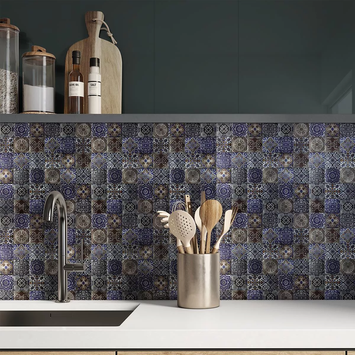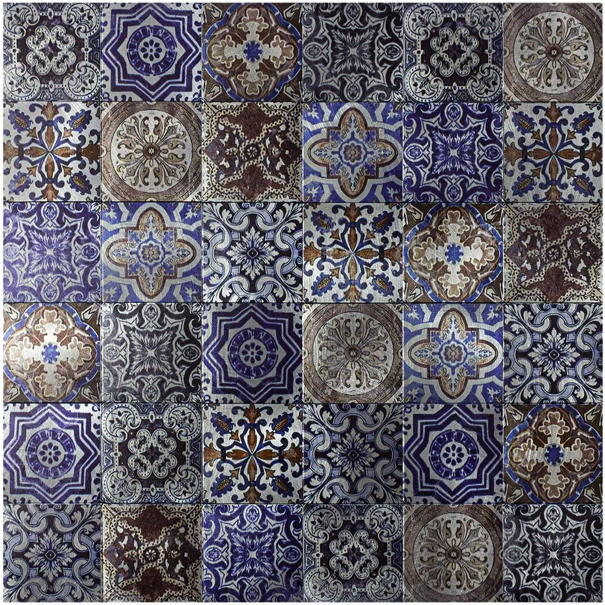 Give your walls a touch of vintage charm with the self-adhesive metal retro Livorno mosaic tiles. These square tiles in bronze, blue and brown impress with a stylish retro look and a matt surface. With a tile size of 30.5x30.5cm and a stone size of 50.8x50.8mm, they offer an ideal solution for kitchens, bathrooms, living rooms and other interior areas, even in wet areas. The self-adhesive property allows for quick and easy installation. Made from high-quality metal and aluminum, the 4mm thick tiles are durable and easy to handle. Each pack covers an area of 0.093m² and weighs 0.46 kg. Bring timeless style and practical functionality to your home.