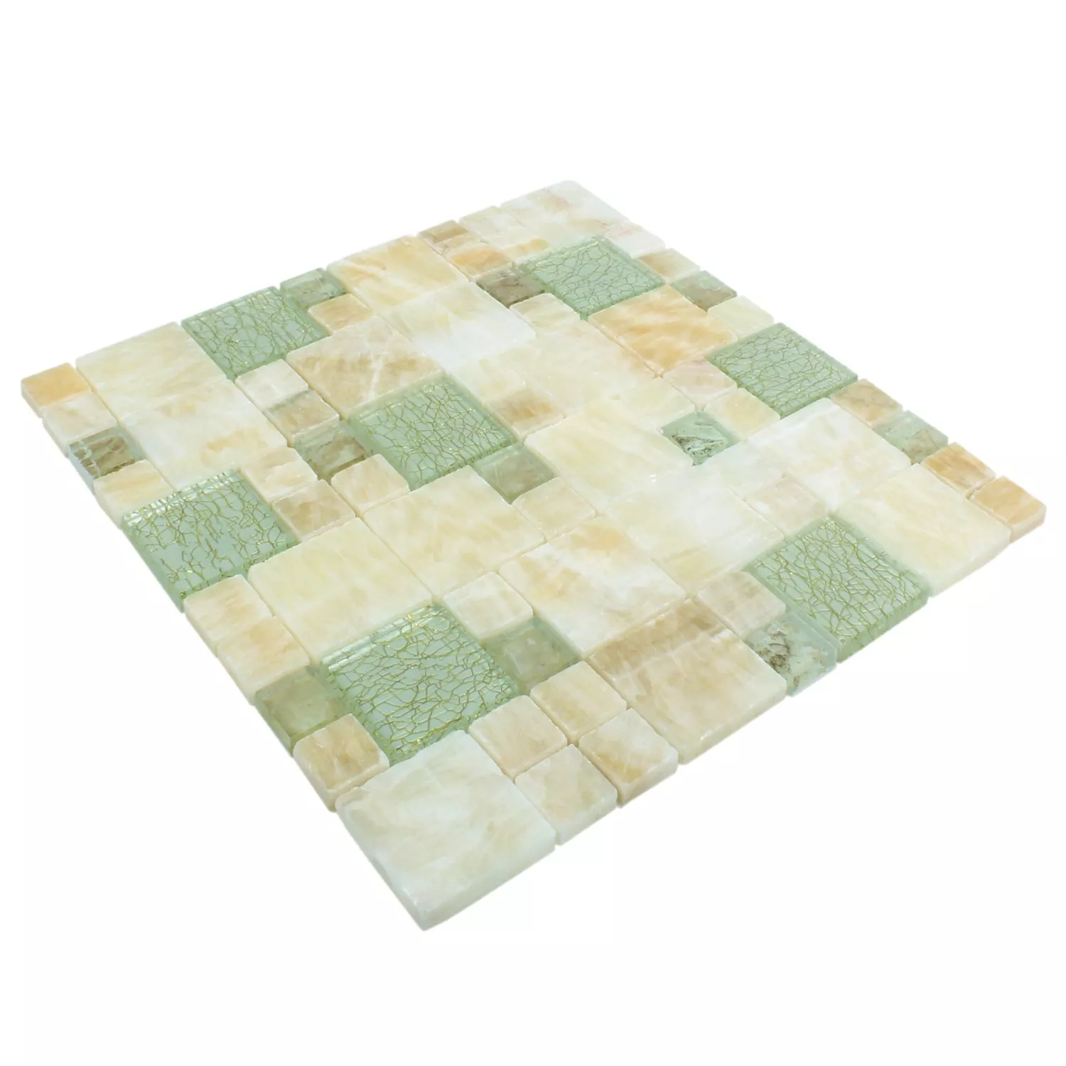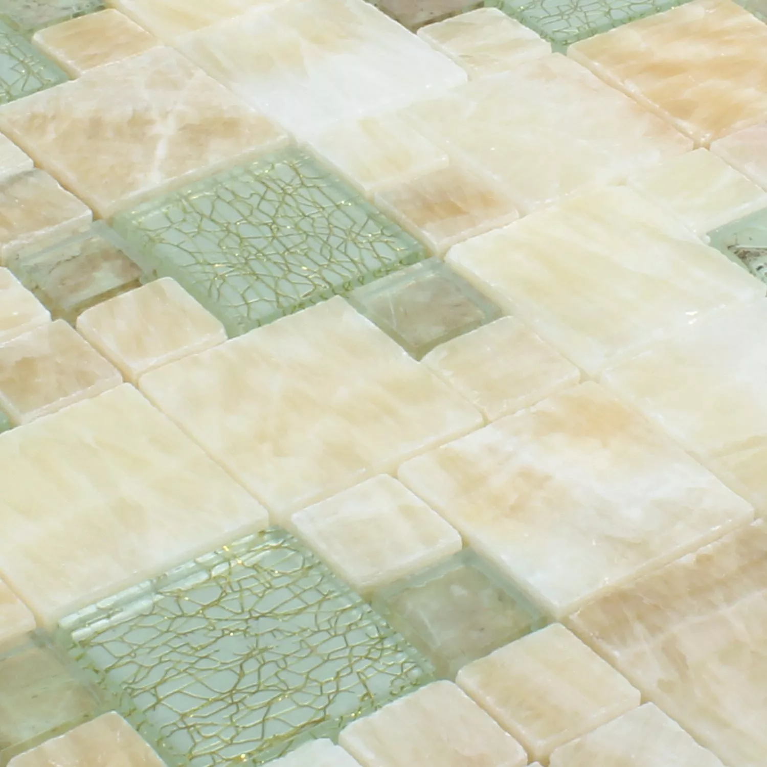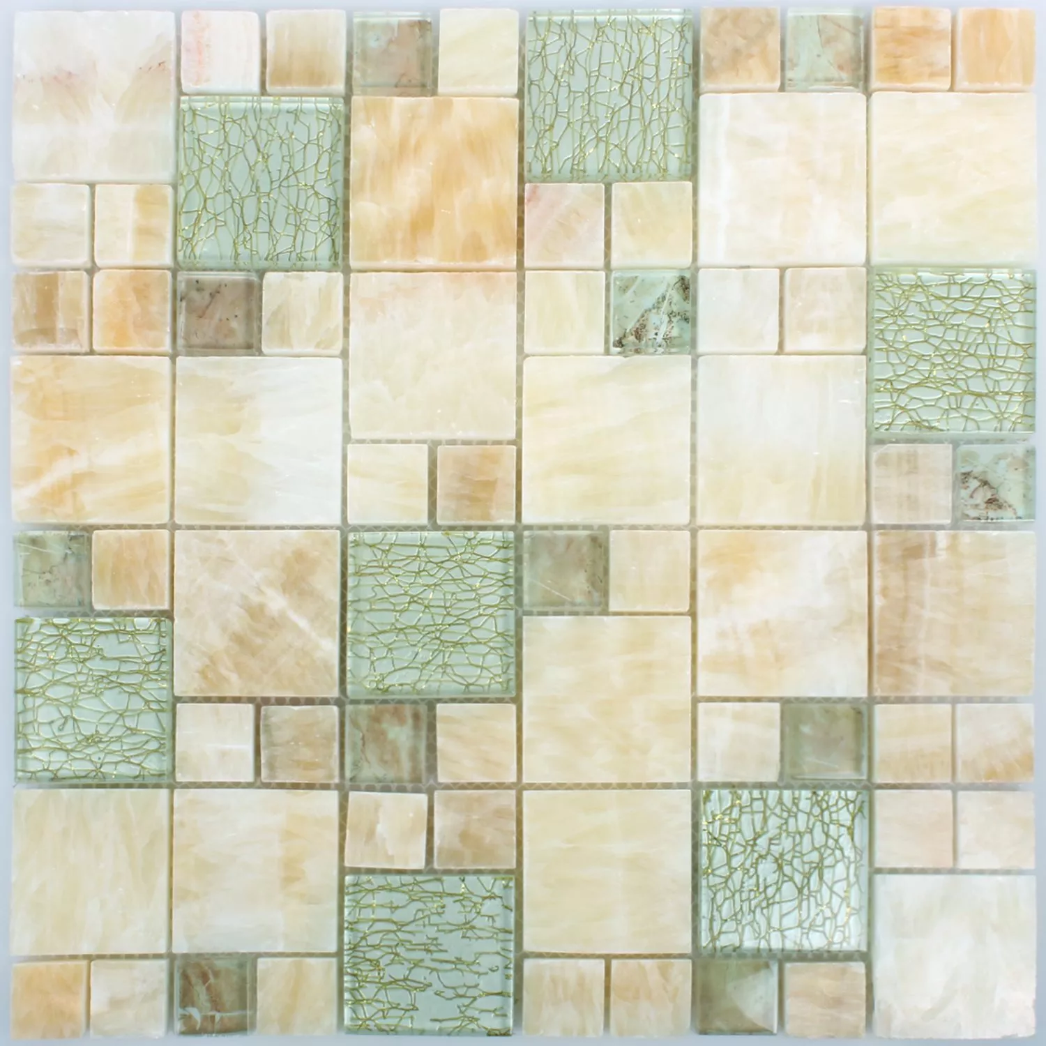 Mosaic tiles are modern and serve as borders, floors or wall tiles. If you are looking for a stylish and high-quality floor covering, the glass mosaic tile Onyx Larinera in Gold Mix is the right choice. A large selection of tile mats can be found in the Glass Natural Stone Mosaic section.