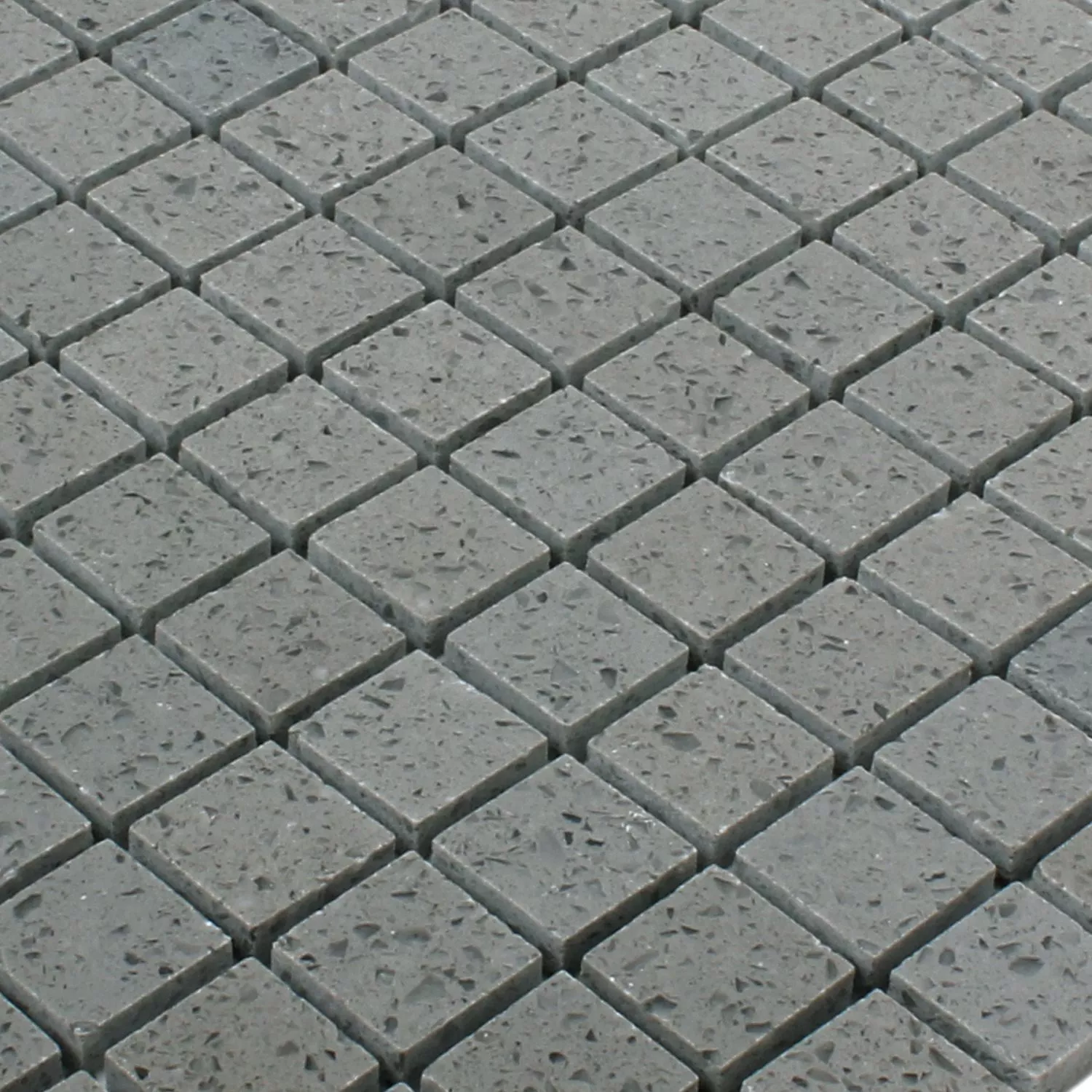Trendy mosaic tiles ensure a modern, homely atmosphere in all rooms. Therefore, the beautiful polished Latina natural stone tiles are a good choice for all private and public spaces. The distinctive stone mosaic is crafted from quartz and synthetic resin, making it easy to maintain as well. These mosaic tiles in the subtle tones of grey, black and white offer a lot of variety for the eye thanks to the sophisticated speckles. Since the Latina Polished natural stone tiles are available in three different colours, they can be laid in all rooms of the house. The bathroom and kitchen are bright, the conservatory and party room are dark and other rooms are designed in the simply elegant shade of grey.