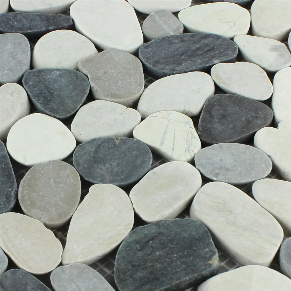 Mosaic Tiles River Pebbles Serrated Creme Anthracite