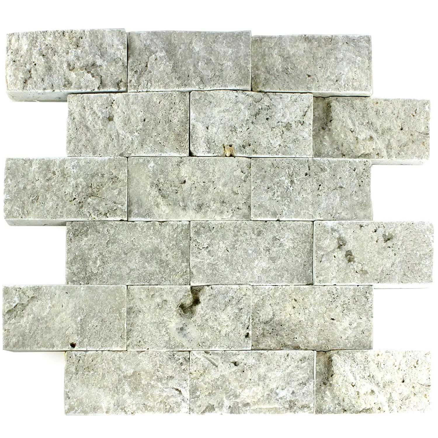 Mosaic Tiles Travertine 3D Silver Brick