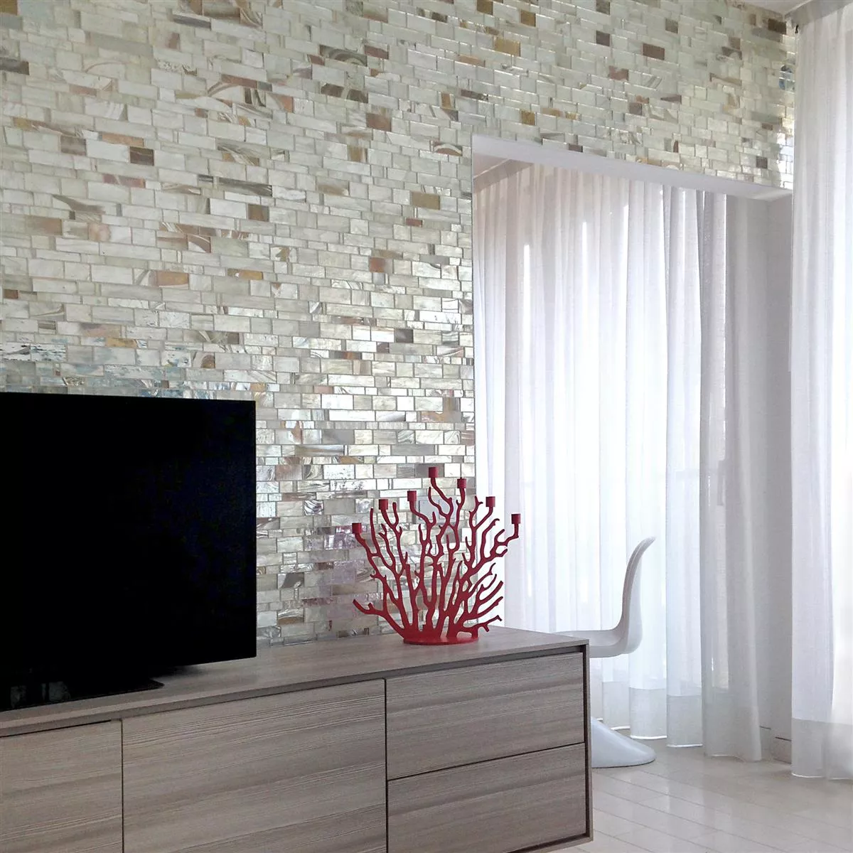 If you also value individual style, high-quality material and a trendy look when furnishing a living room, you should get to know the glass mosaic tiles Metropolis in opal. This glass mosaic tile is made by the famous and renowned Italian manufacturer of glass ceramics, the Trend-Vi company. Floors that have been equipped with glass mosaic have a particularly elegant appearance, but are just as easy to care for and resilient as other tiled floors. The mosaic tiles are available as sticks with a thickness of 4 mm, the mat size is 30.8x28.8cm.