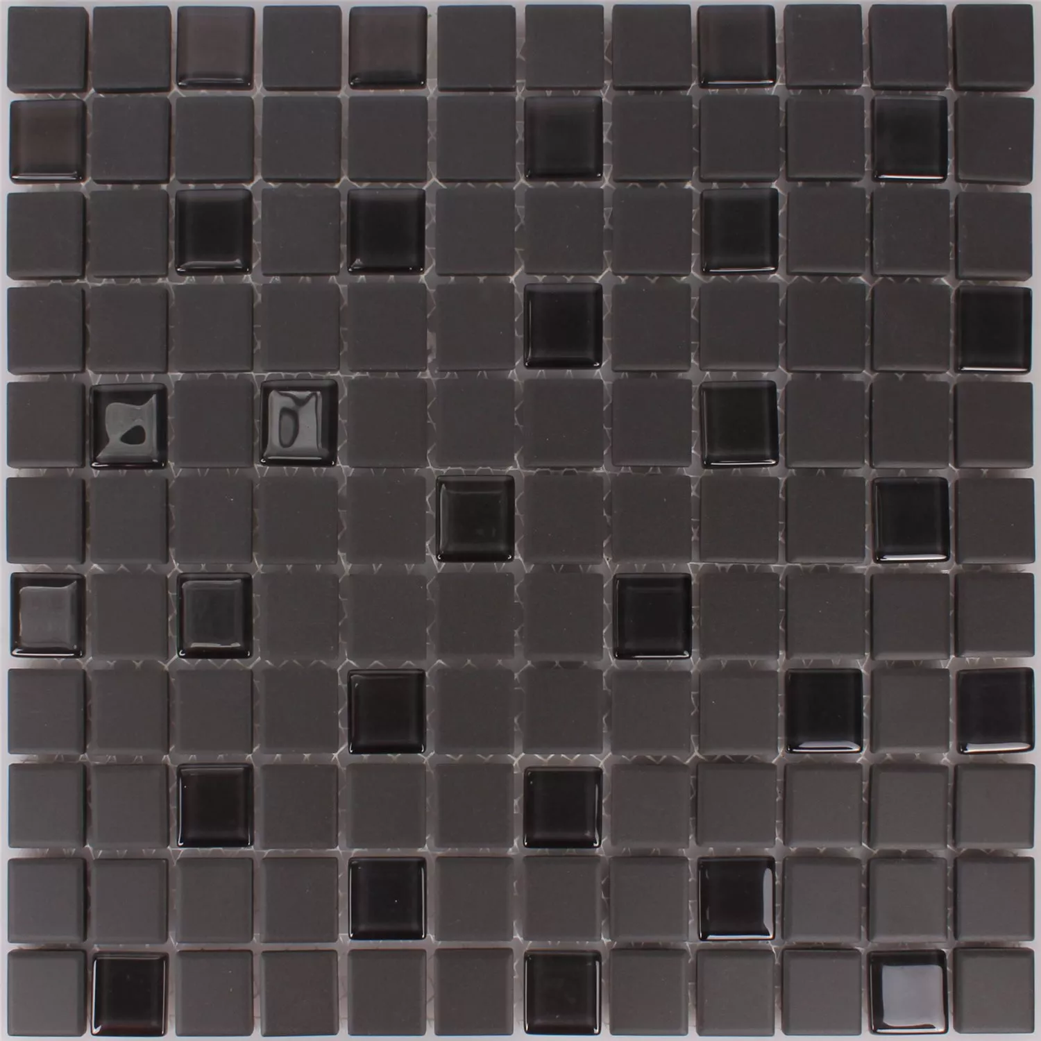 The "Garden" mosaic tile in black combines modern design with versatile functionality. This tile is made from a high-quality material mix of ceramic and glass, combined with an attractive surface structure that sets both matte and glossy accents. The stone size of 25x25 mm and a thickness of 5.2 mm ensure a robust and durable construction. Each tile is available in a square format of 32.6x30 cm and covers an area of 0.098 m² per mat.