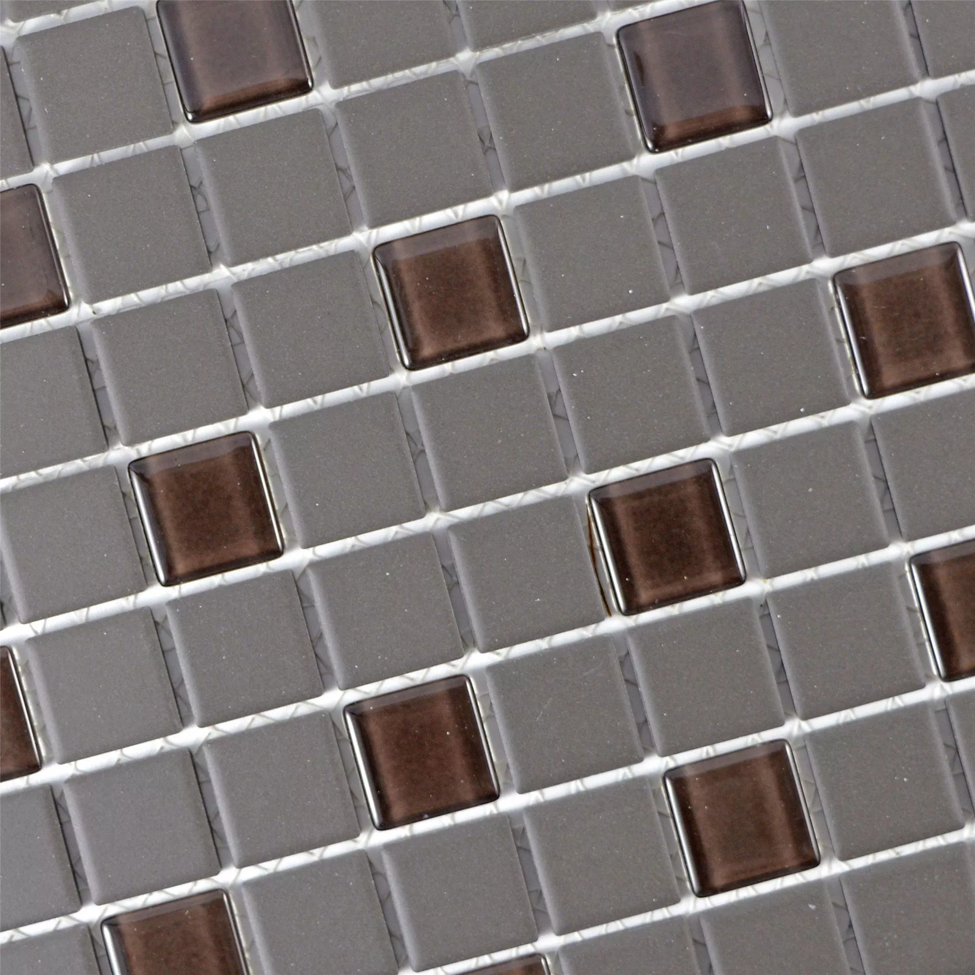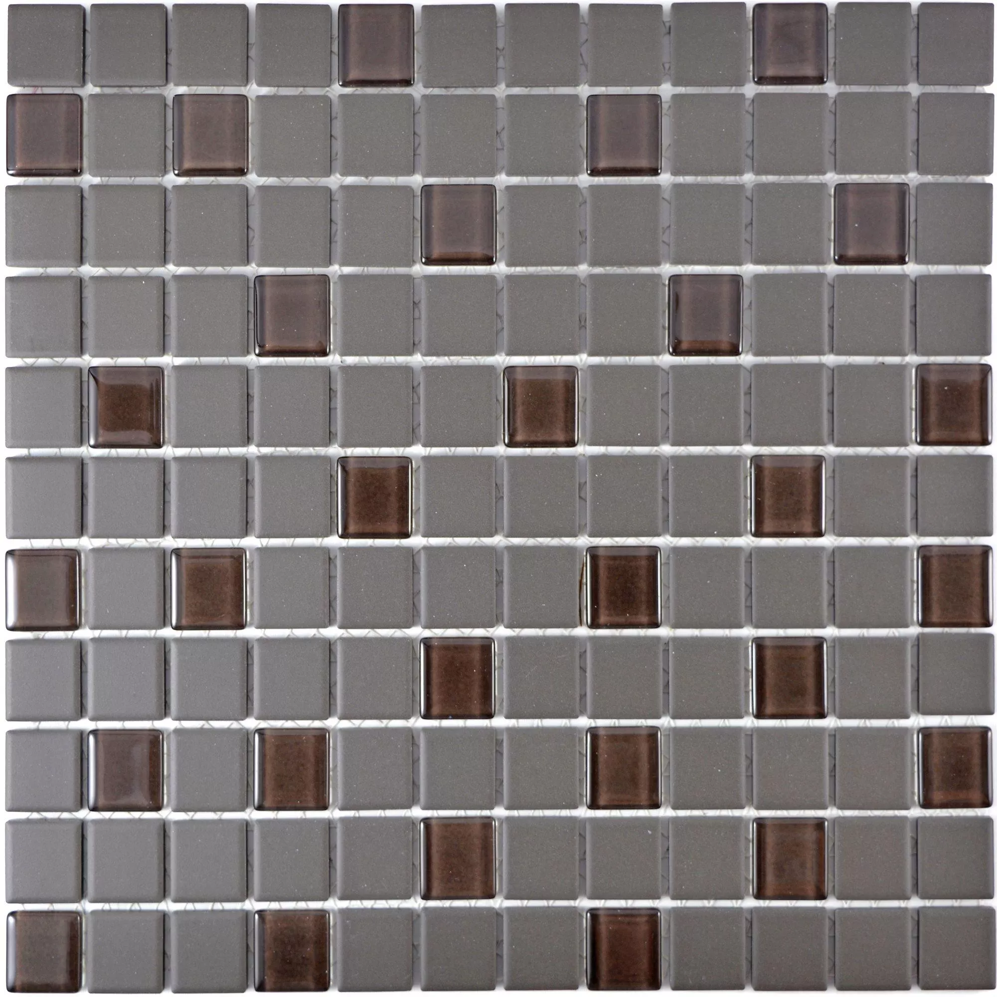 The "Garden" mosaic tile in the elegant brown-gray color combines sophisticated design with versatile uses. This tile is made from a sophisticated material mix of ceramic and glass and offers both matt and glossy surfaces that give your room a modern yet timeless look. With a stone size of 25x25 mm and a thickness of 5.2 mm, the tile is supplied in a square format of 32.6x30 cm, with each mat covering an area of 0.098 m².