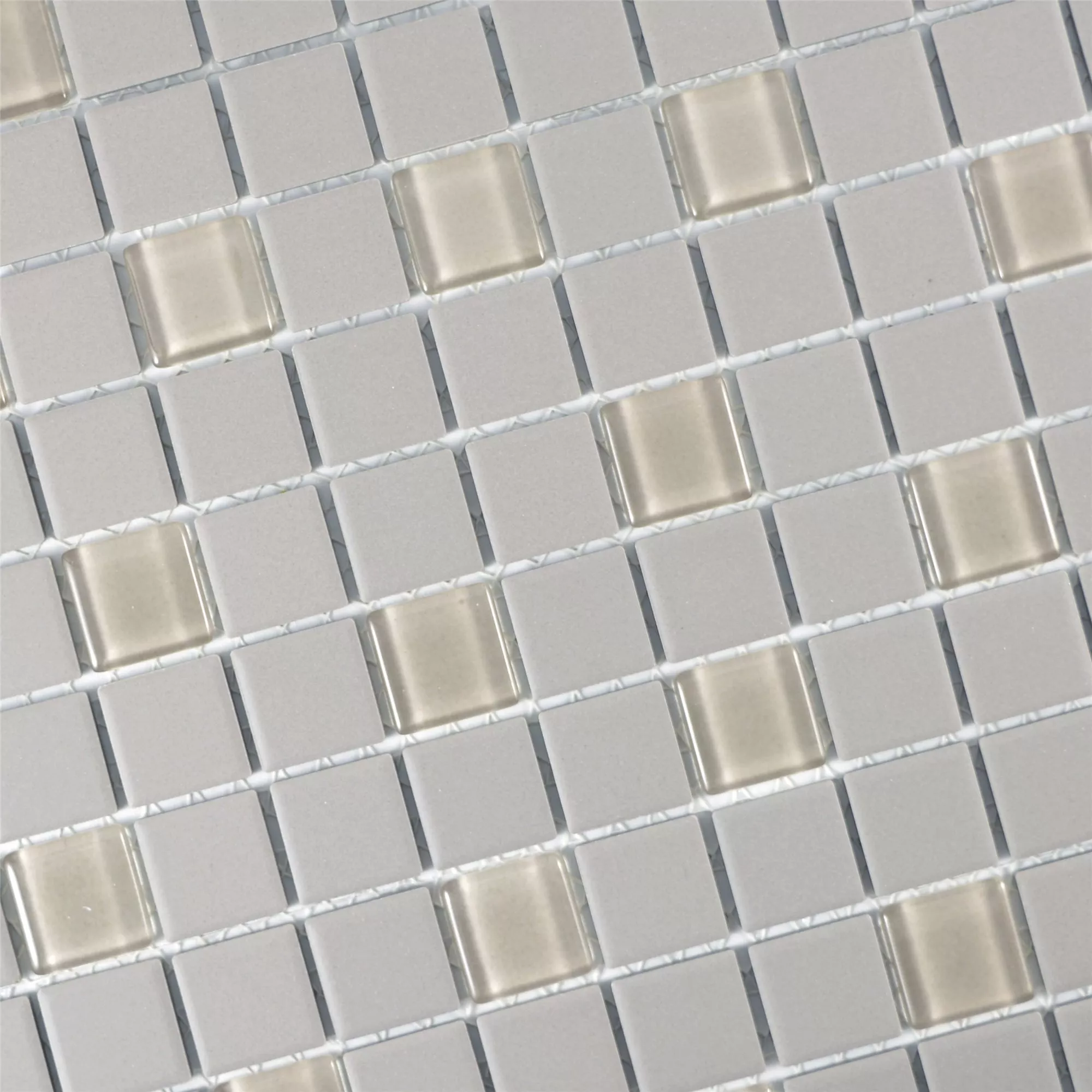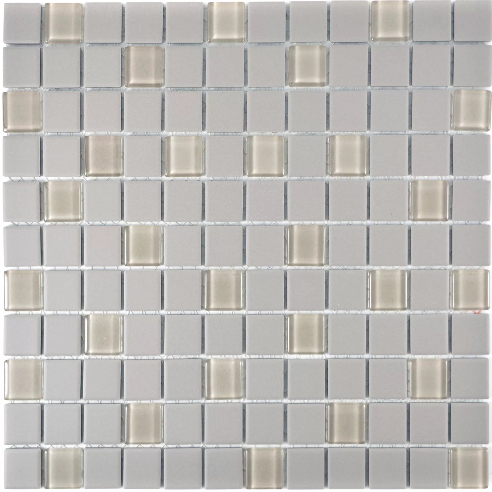 The "Garden" mosaic tile in light grey offers a stylish combination of functionality and design. Made from a high-quality mix of ceramic and glass, this tile combines matt and glossy surfaces that give any room a modern and elegant flair. With a stone size of 25x25 mm and a thickness of 5.2 mm, it is available in a square format of 32.6x30 cm, with each mat covering an area of 0.098 m².