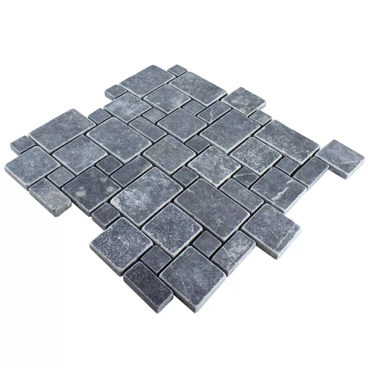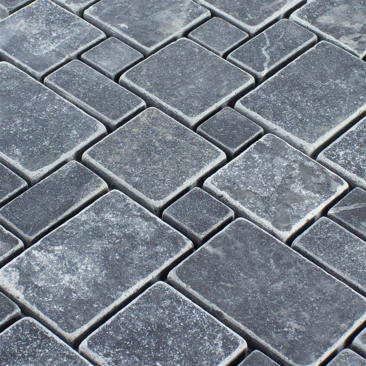 The Kilkenny mosaic tile in elegant black made from the finest marble brings timeless elegance and a modern look to any room. This high-quality natural stone tile impresses with its matt, tumbled surface, which gives both walls and floors a luxurious finish.