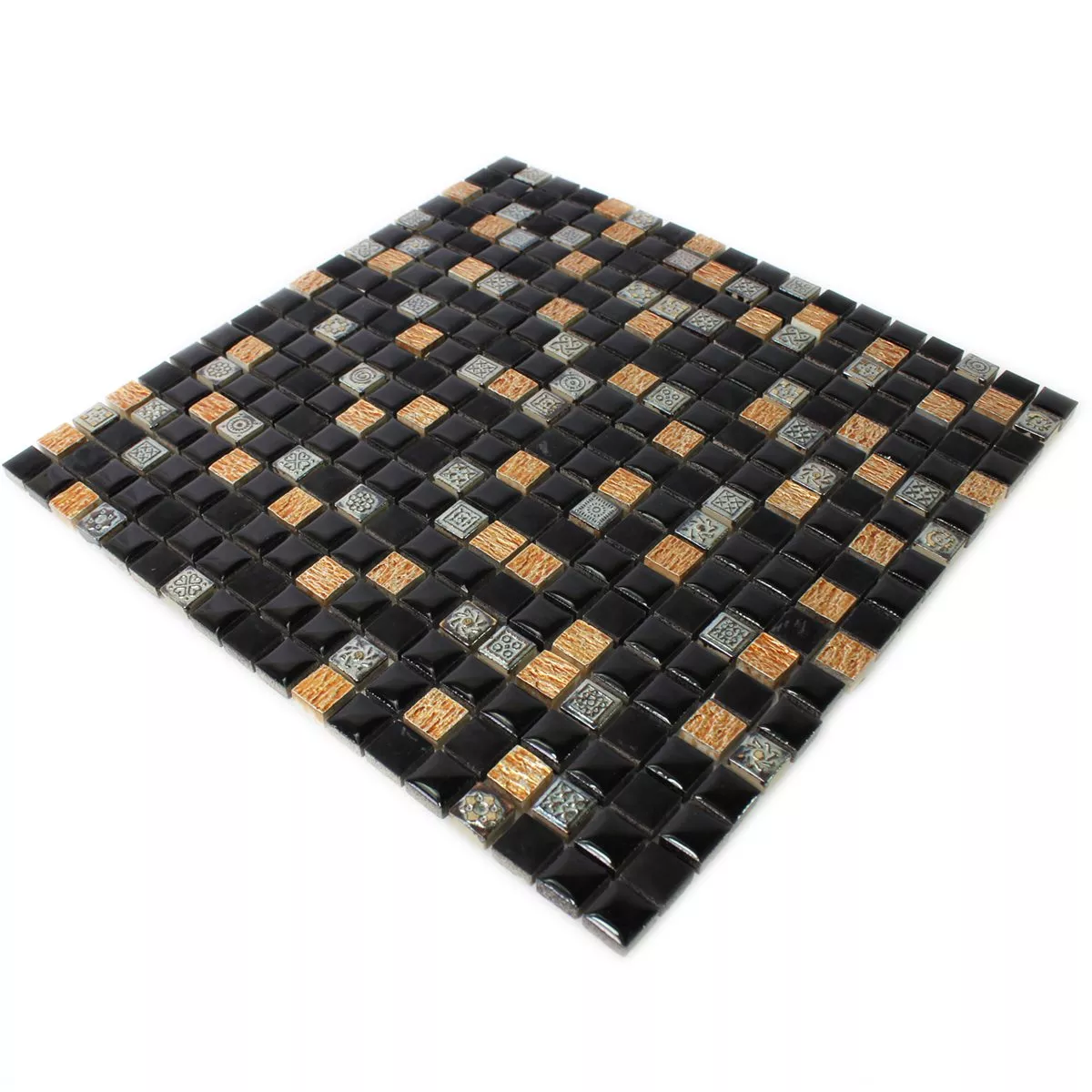 Made from high-quality natural stone and resin, the tiles impress with a varied matt, glossy and structured surface. This gives the mosaic tiles a special depth and a unique play of light. The square tiles in the format 30.5 × 30.5 cm are made up of fine 15 × 15 mm mosaic stones that are fixed to a net ready for installation. This enables simple and precise installation.