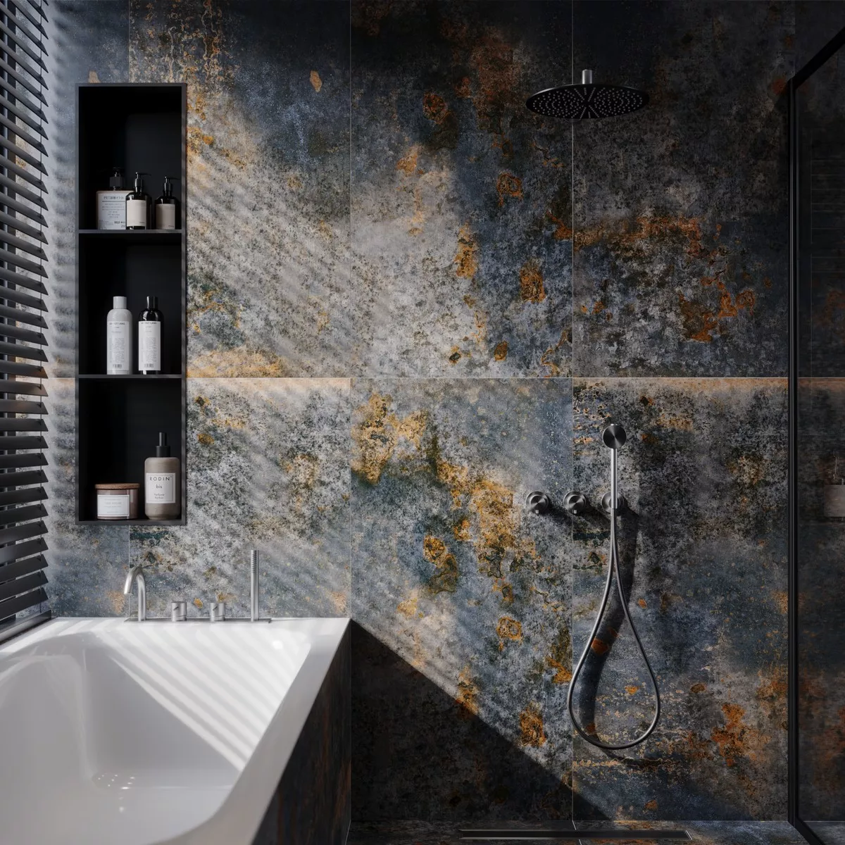 This tile is ideal for use indoors such as the kitchen, bathroom, living room or hallway and can be laid as a floor or wall tile. Thanks to its water resistance and frost resistance, it is also ideal for outdoor use, such as on terraces or balconies. The tile shows its strengths particularly in wet areas, such as on the shower floor or shower wall, and ensures a hygienic and easy-care surface.