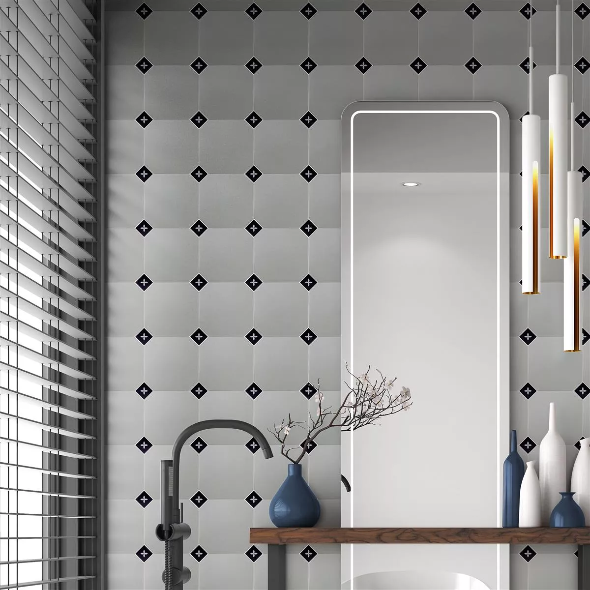 Die Feinsteinzeug Fliesen Genexia Schwarz Weiß Decor 2 Einleger bringen stilvolle Vielfalt und zeitlose Eleganz in Ihr Zuhause. Das quadratische Format mit mattem Finish verleiht jedem Raum eine moderne Note.