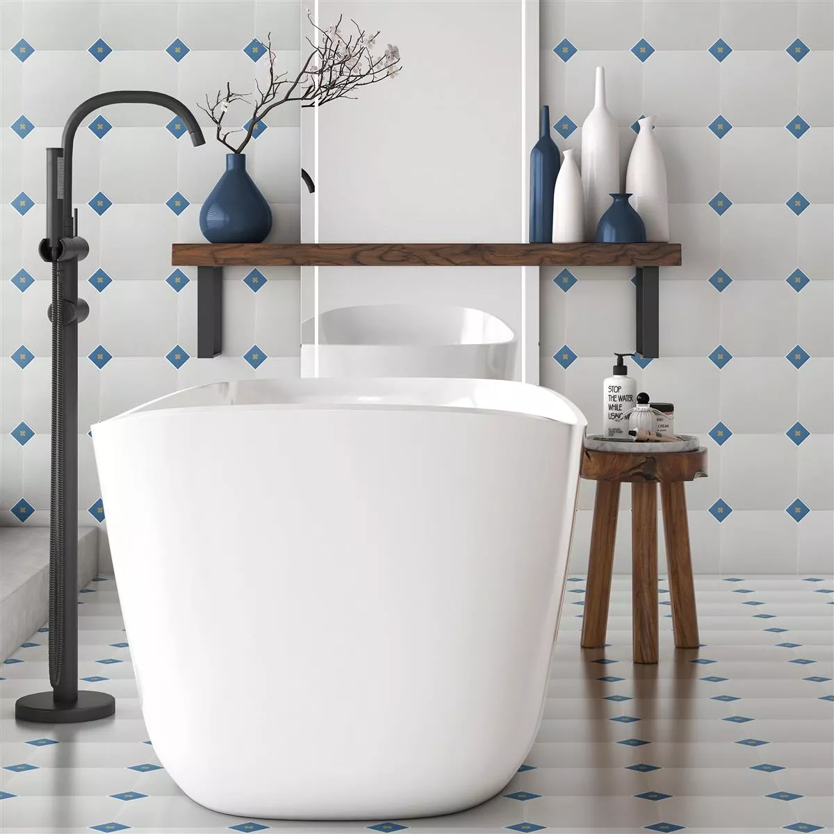 Feinsteinzeug Fliesen Genexia Decor Blau Einleger - Retro-Charme für Ihre Räume
