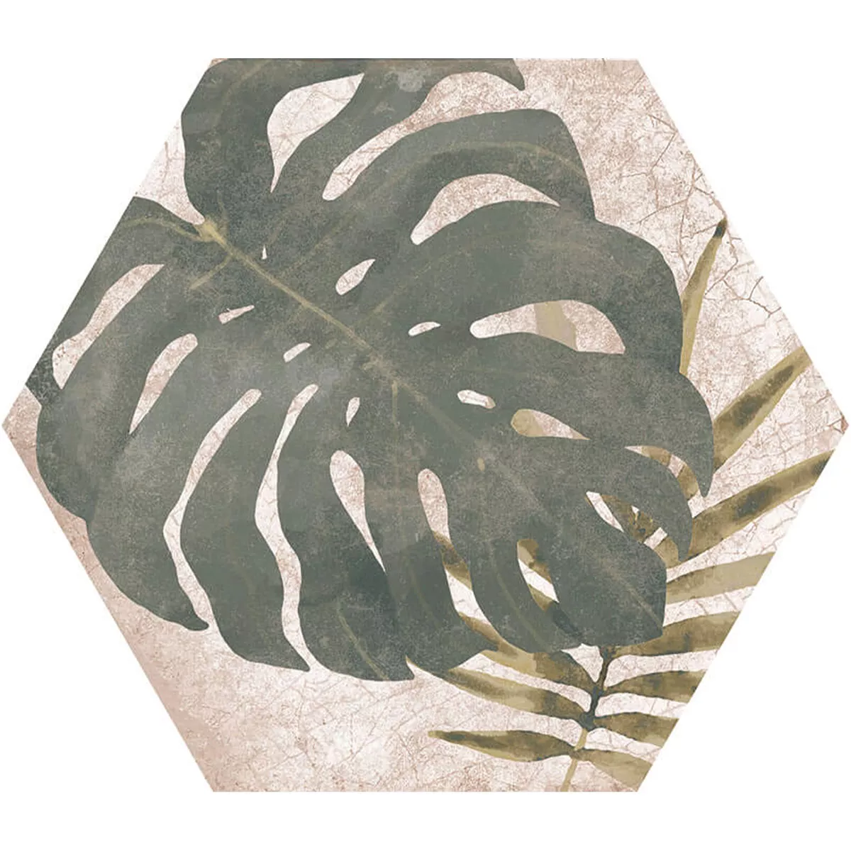 Porcelain Stoneware Tiles Honiara Hexagon Decor Green 22,5x25,9cm Decor