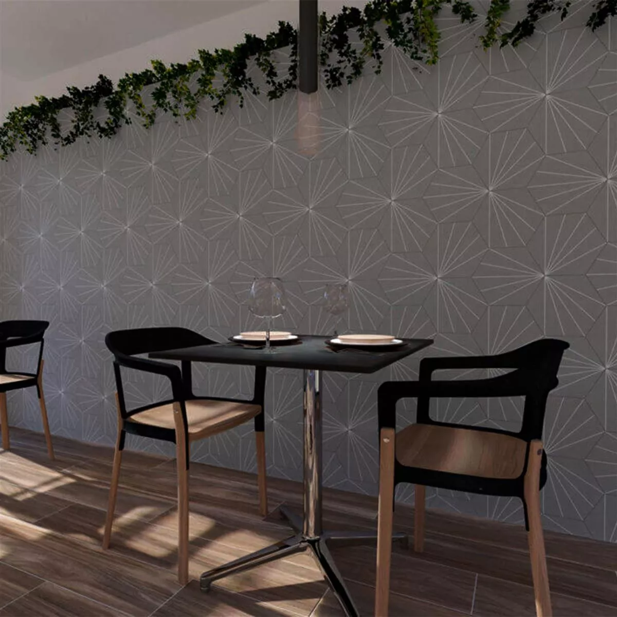 Discover the exquisite Millennium Hexagon 3D Grey porcelain stoneware tiles and give your rooms a modern and stylish atmosphere. With their unique hexagonal format and fascinating 3D look, these tiles are a real eye-catcher.