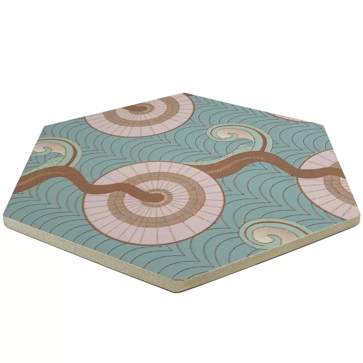 The “Modena Hexagon Decor 2” porcelain stoneware tiles combine functionality with aesthetic charm. With a thickness of 10mm, they are robust and perfect for wet areas, showers, bathrooms, kitchens, living rooms and indoor areas. The matt surface gives the tiles a modern appearance, while the R10 slip resistance ensures safety.