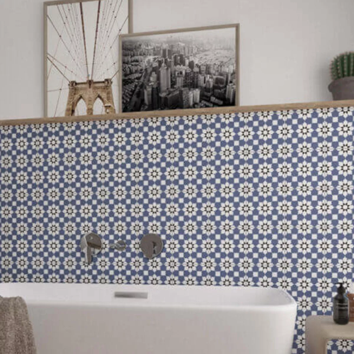 Transform your home into an oriental oasis with the Samarkand Blue porcelain stoneware tiles (22.5 x 22.5 cm). These tiles impress with their fascinating blue and white design and their diverse uses.