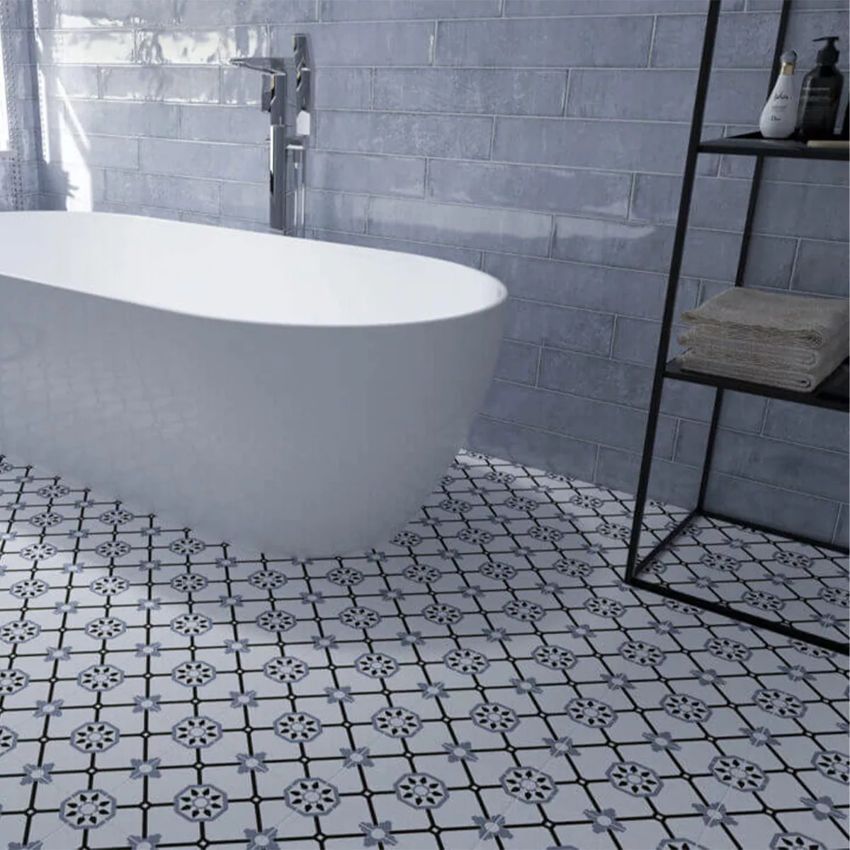 Bring Mediterranean flair and timeless elegance into your home with the Zamora porcelain stoneware tiles in blue and white. These square tiles measuring 22.5 x 22.5 cm give any room a stylish yet classic look.