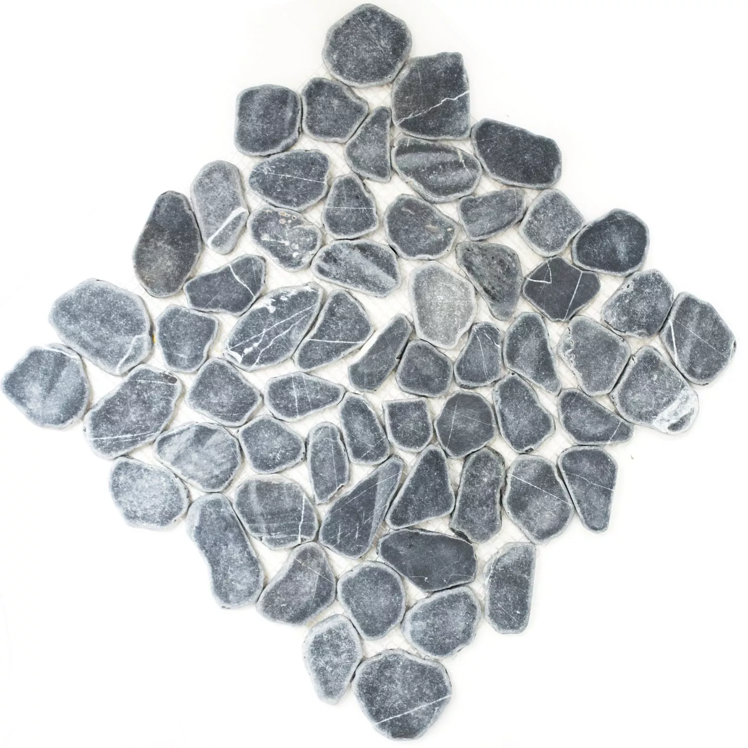 Discover the timeless elegance of the Leros river pebble mosaic tiles in the noble color black. Each mat offers a generous surface area of 0.10 m² and is ideal for designing walls and floors in various indoor and outdoor areas. With a thickness of 9 mm and a variable stone size of 30-80 mm, this tile sets impressive accents in any room.