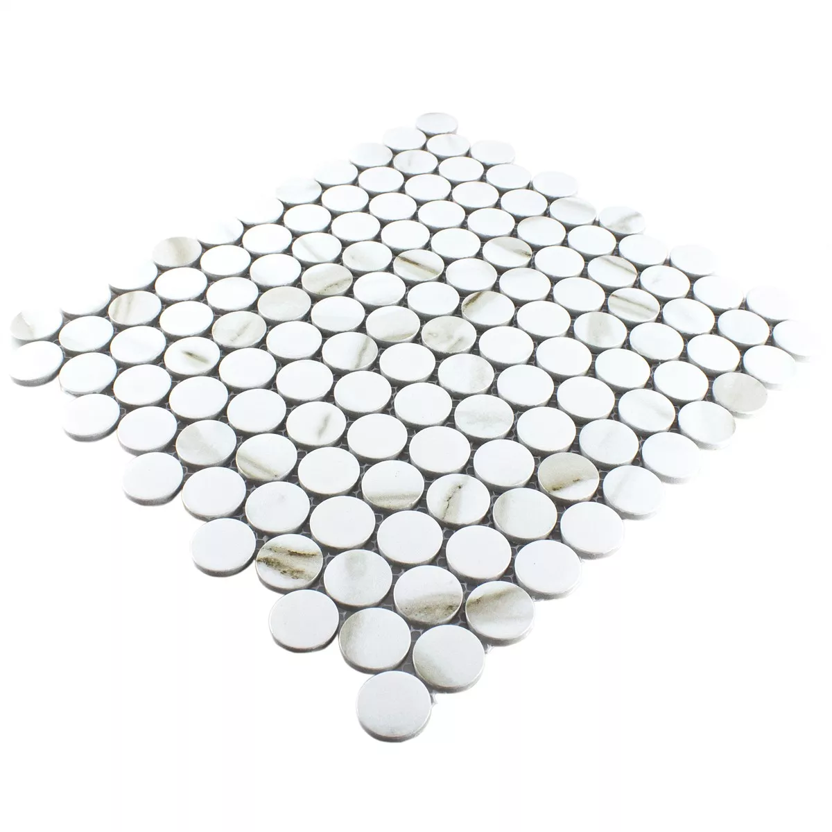 Sample Ceramic Button Round Mosaic Tiles Hunter Calacatta