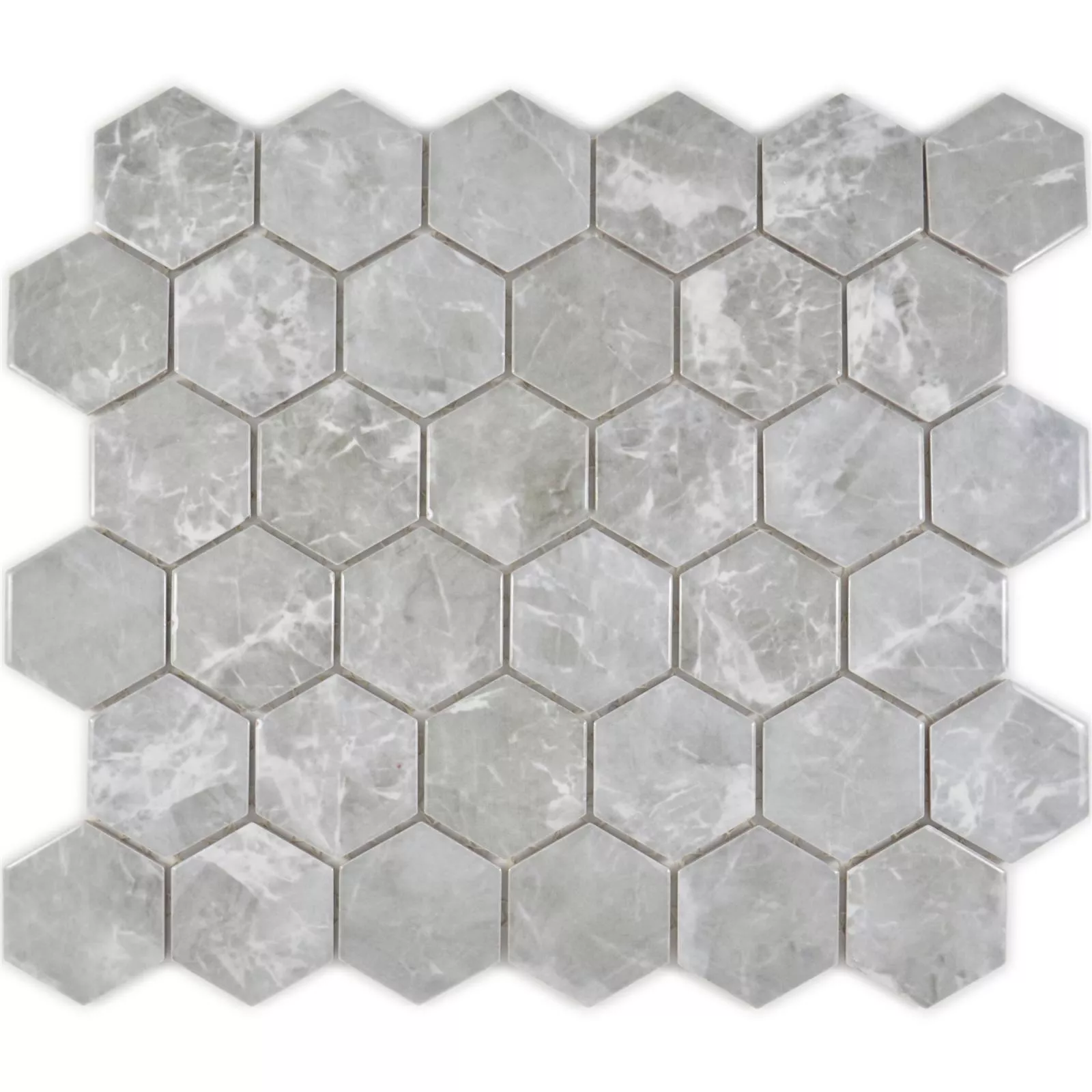 Sample Ceramic Mosaic Mozart Hexagon Grey Glossy