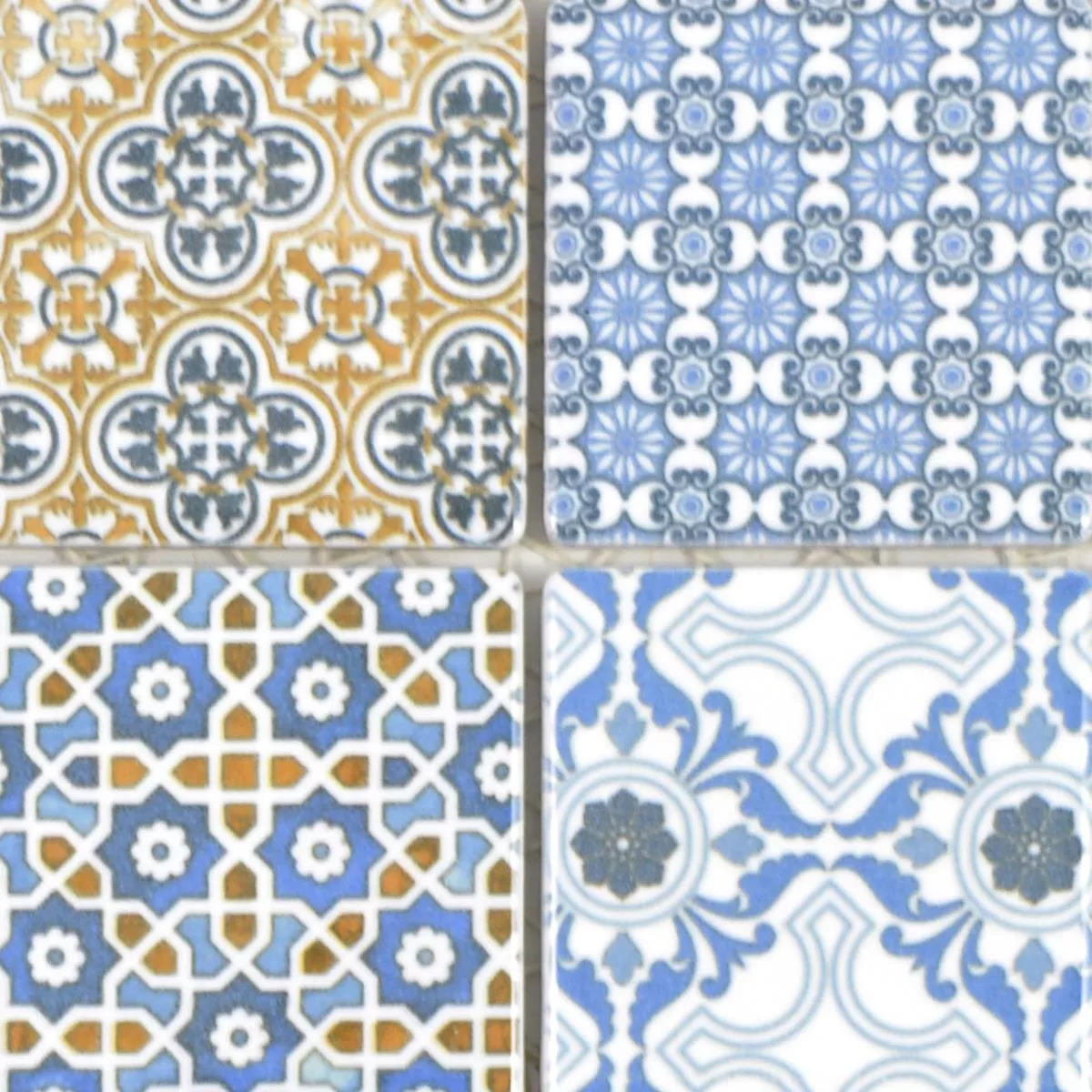 Sample Ceramic Mosaic Tiles Daymion Retro Optic Blue Brown