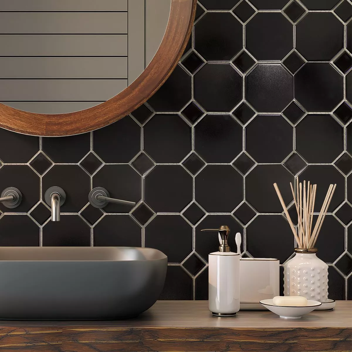 Sample Ceramic Mosaic Tiles Octagon Fürstenberg Black