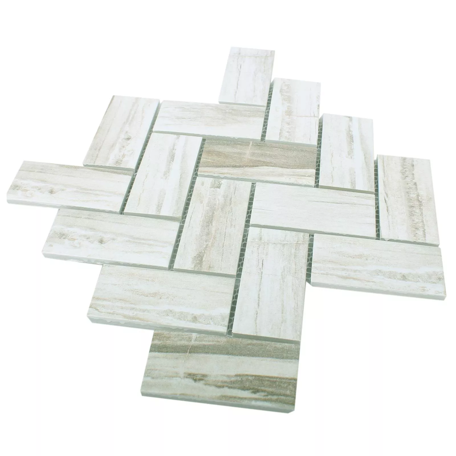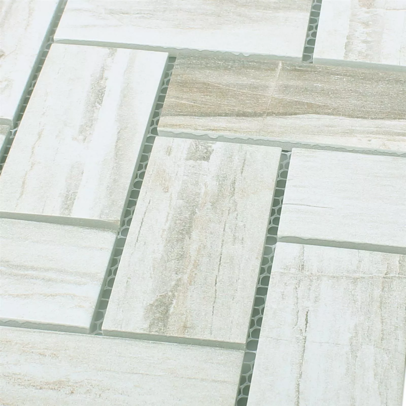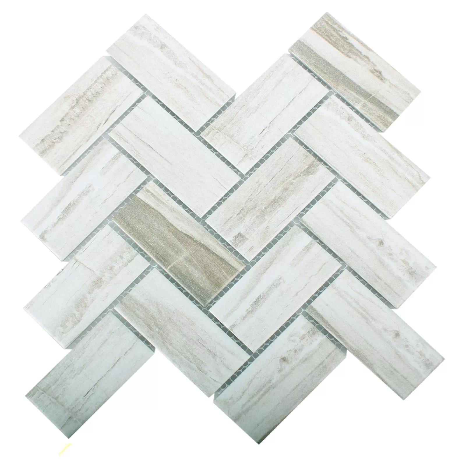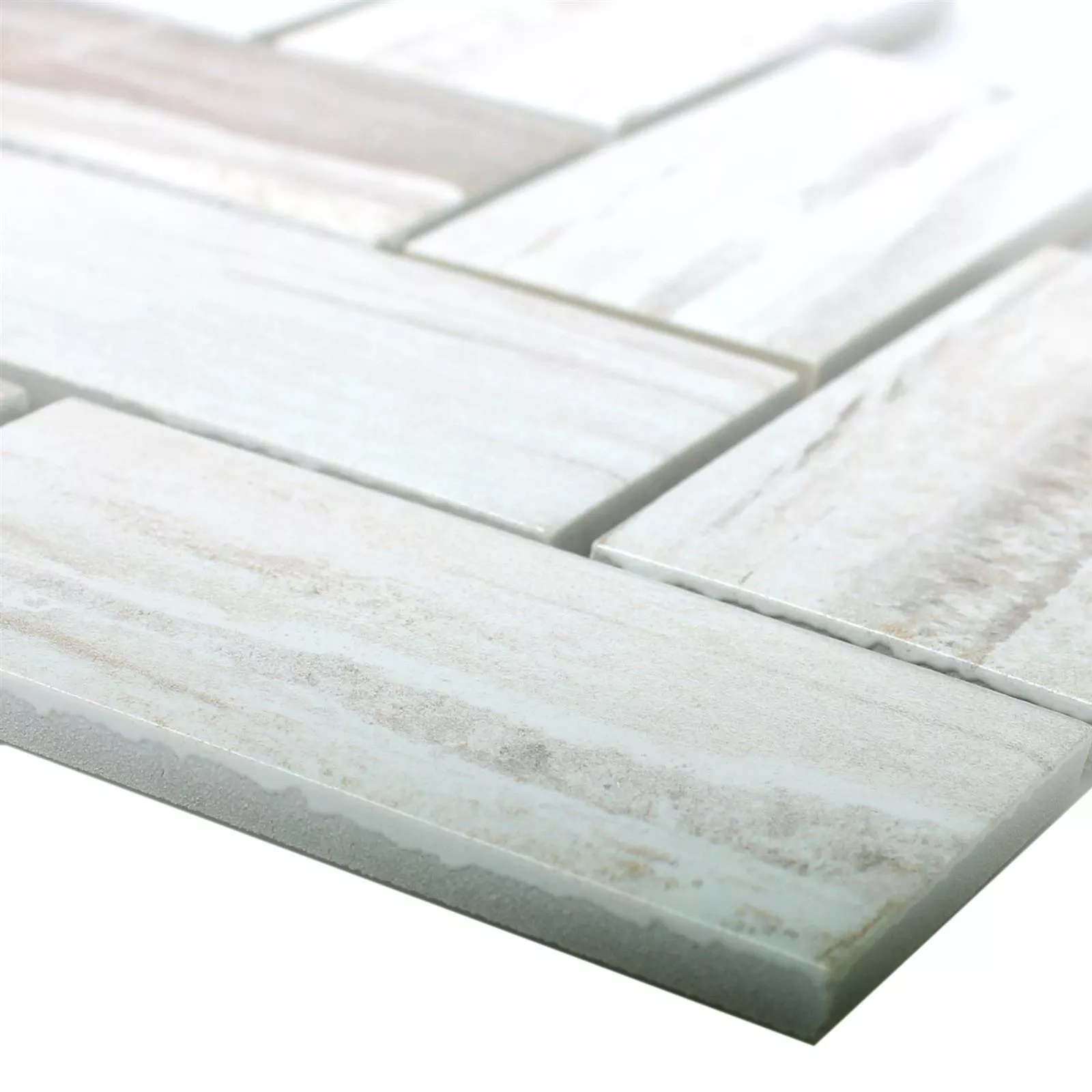 Sample Ceramic Wood Optic Mosaic Tiles Norfolk Fish Bone White