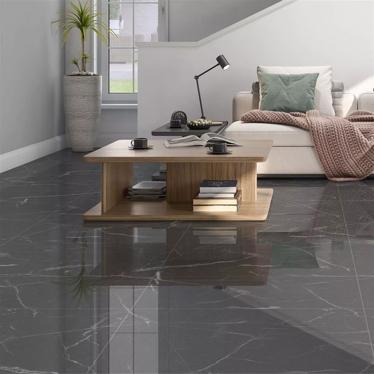 Sample Floor Tiles Santana Marble Optic Polished Dark Grey 30x60cm
