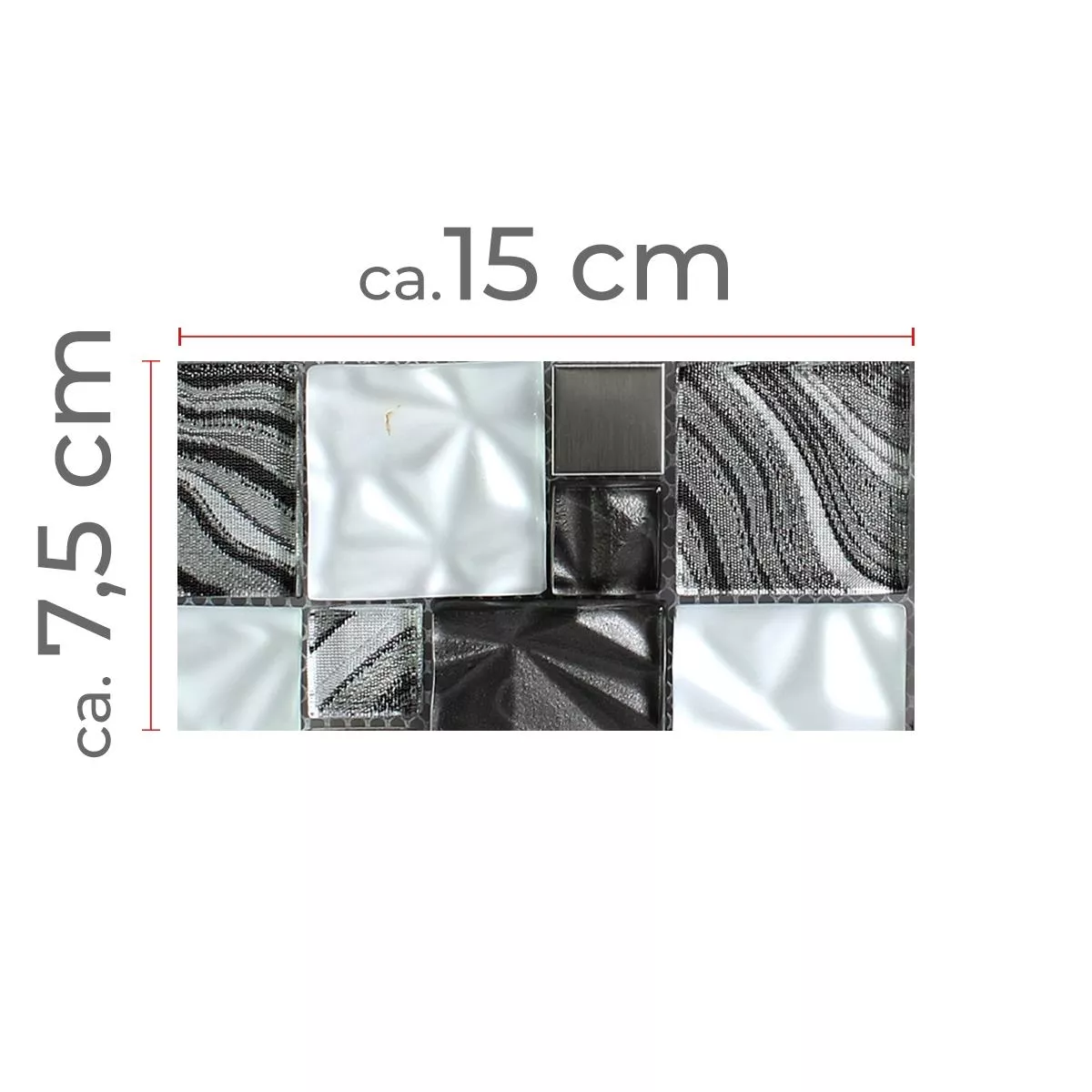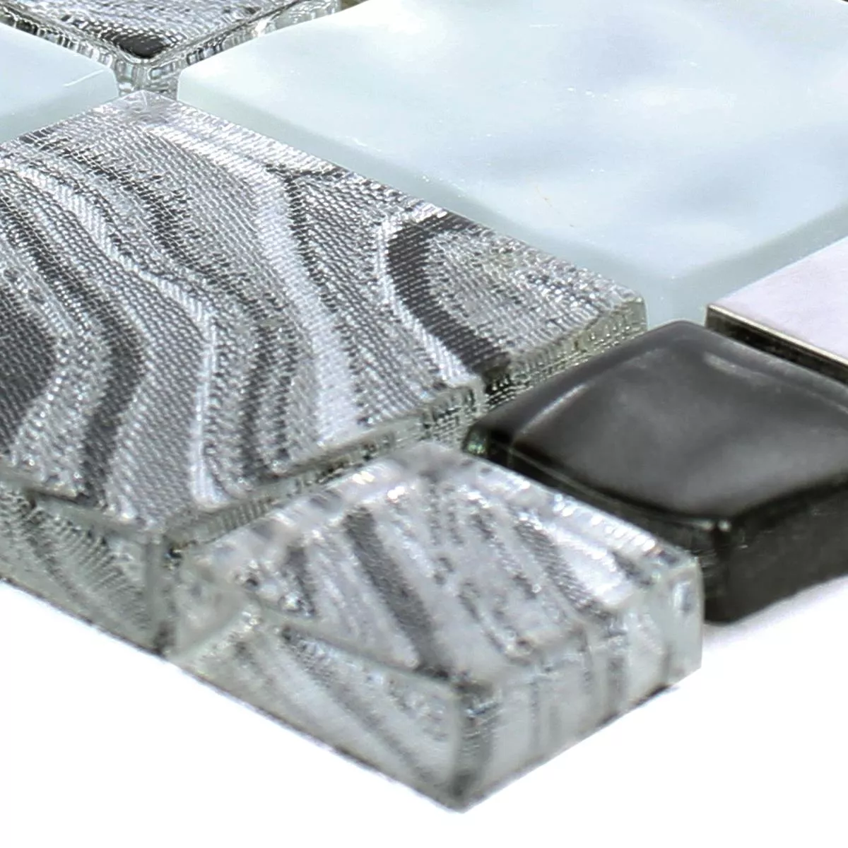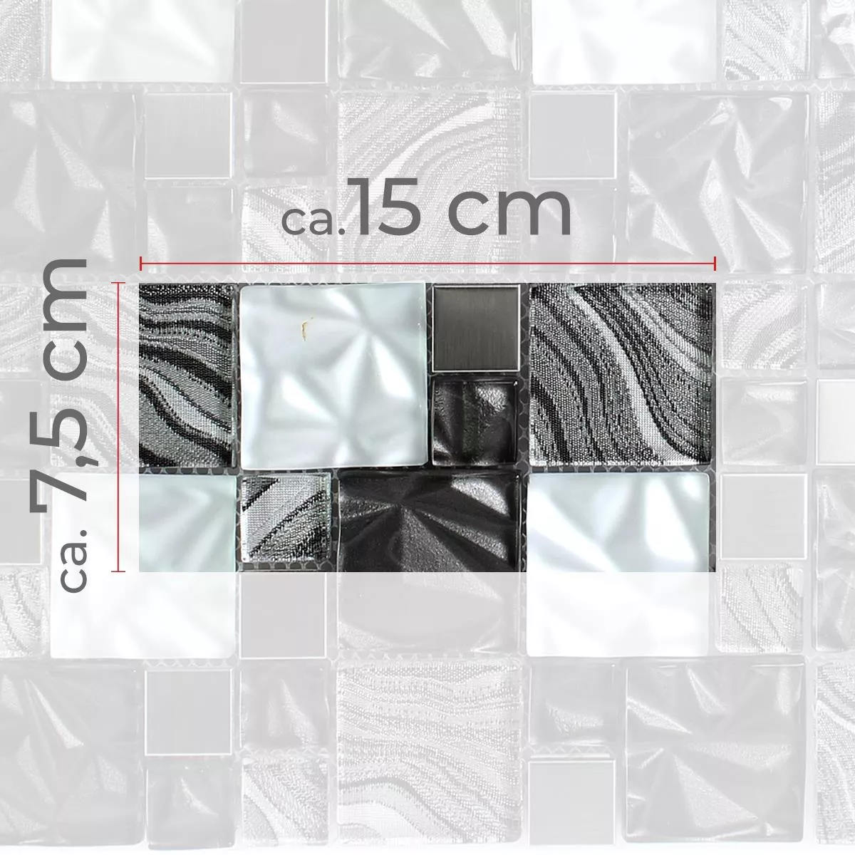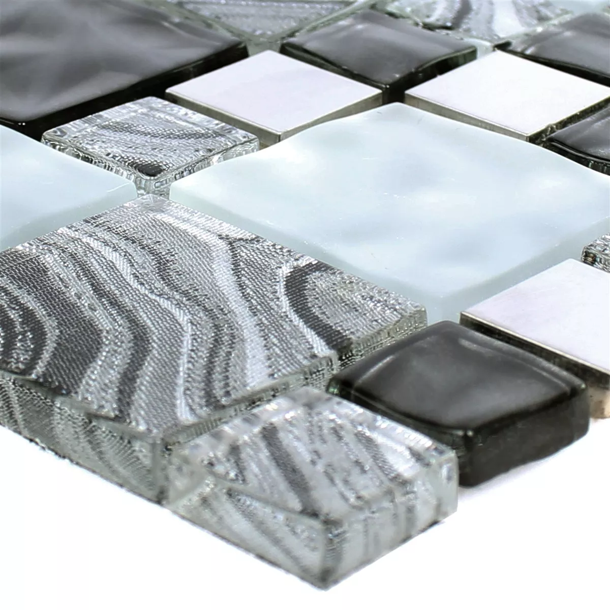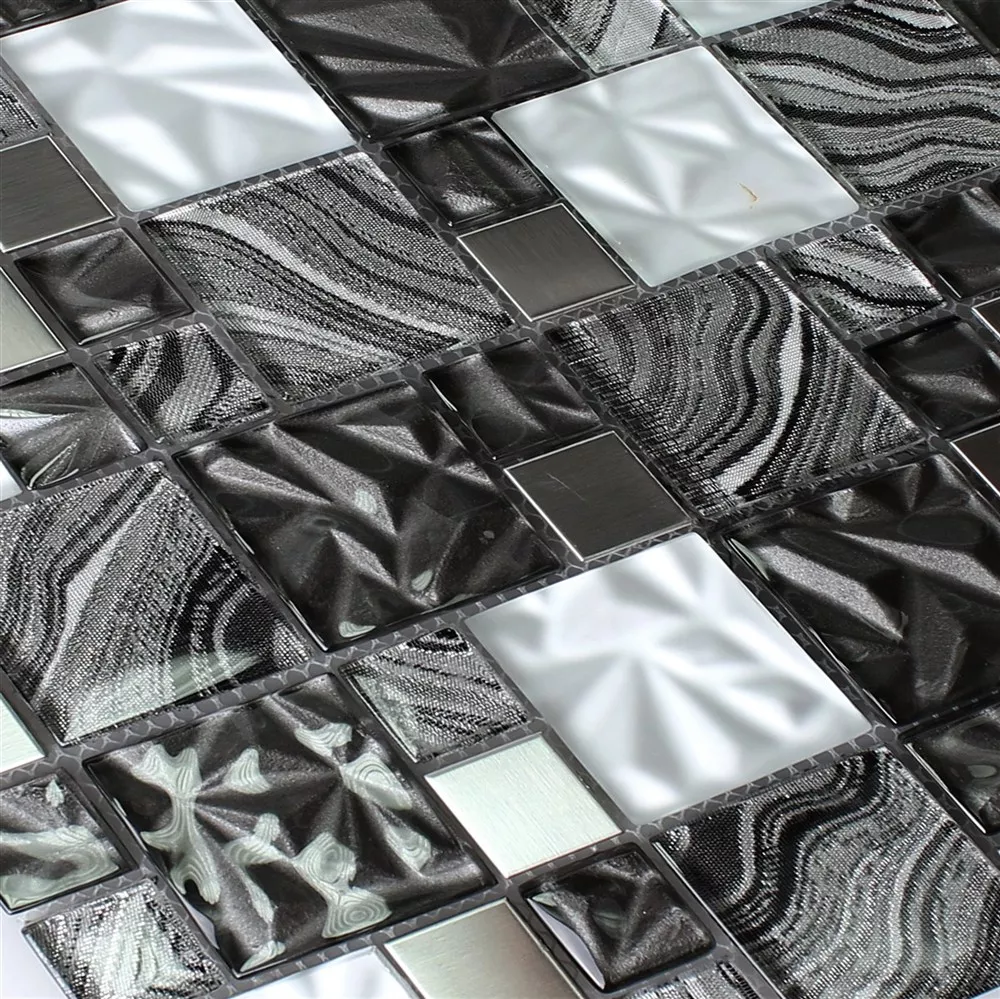Sample Glas Metall Stainless Steel Mosaic Tiles Zadar Grey Black