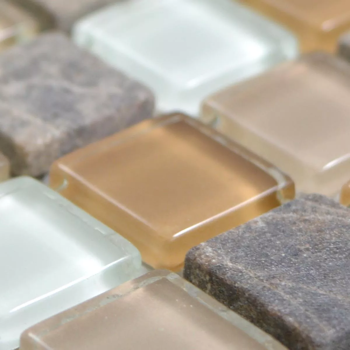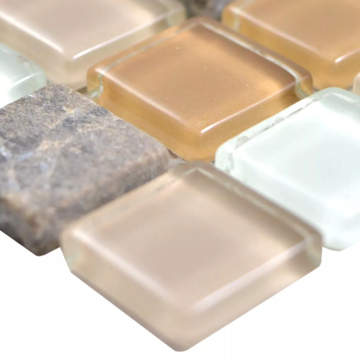 Sample Glas Natural Stone Mosaic Tiles Zekova Beige Brown White