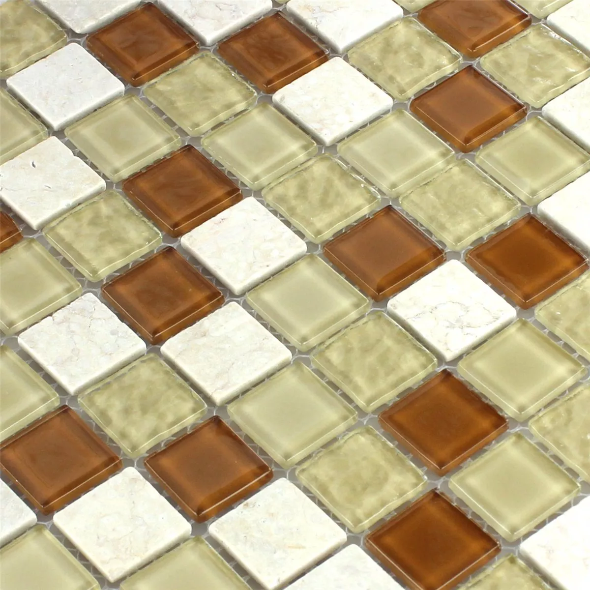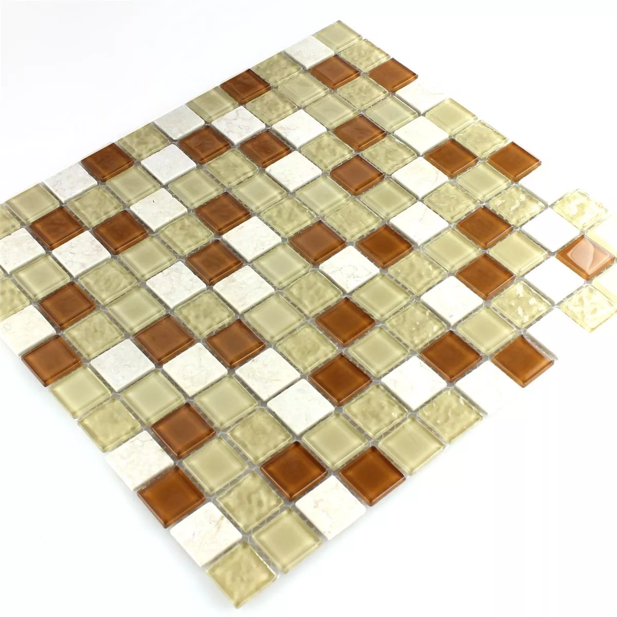 Sample Glass Marble Natural Stone Mosaic Tiles Epsilon Beige Brown Blanc