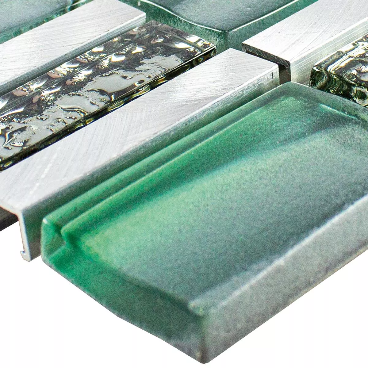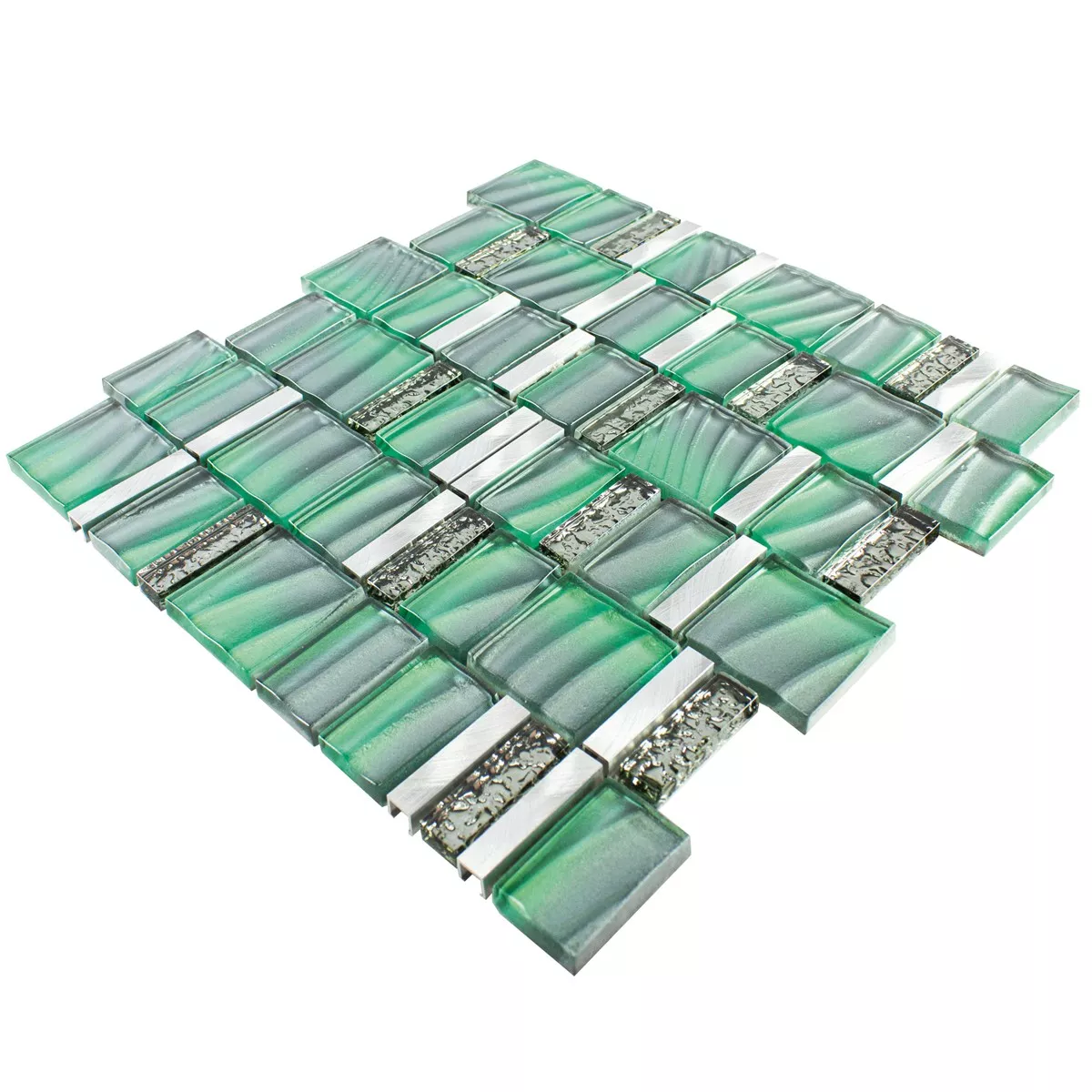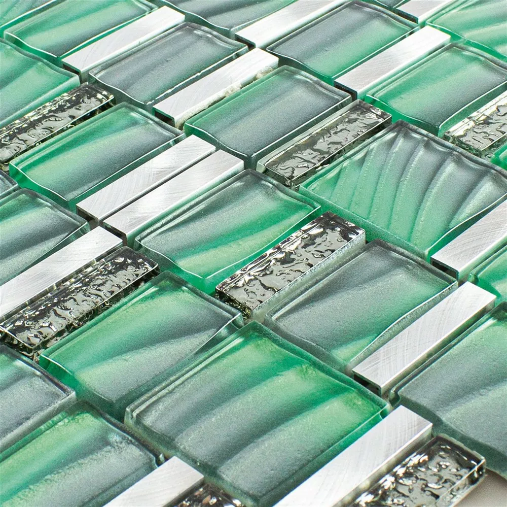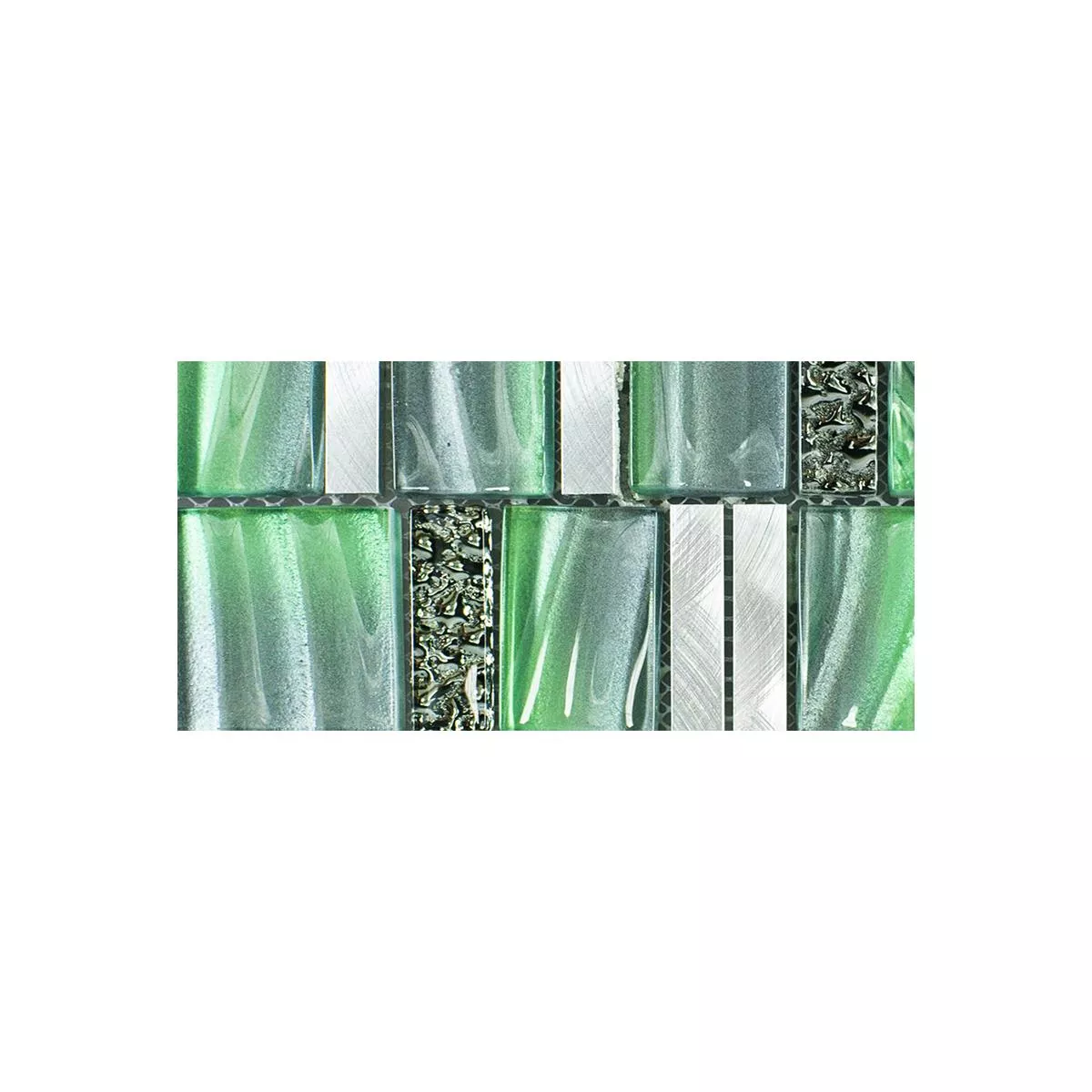 Sample Glass Metal Mosaic Tiles Union Green Silver