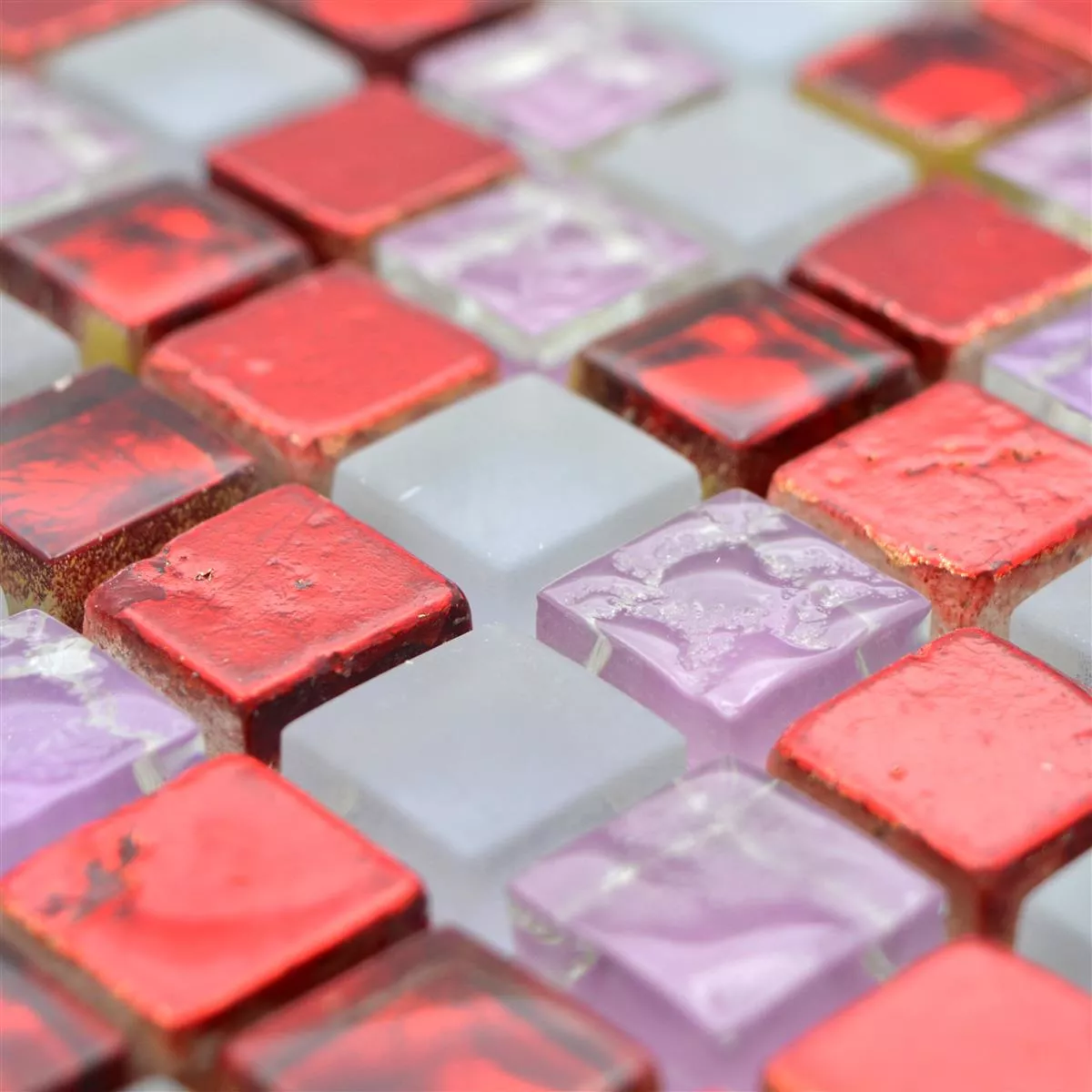 Sample Glass Mosaic Natural Stone Tiles Cleopatra Pink Red White