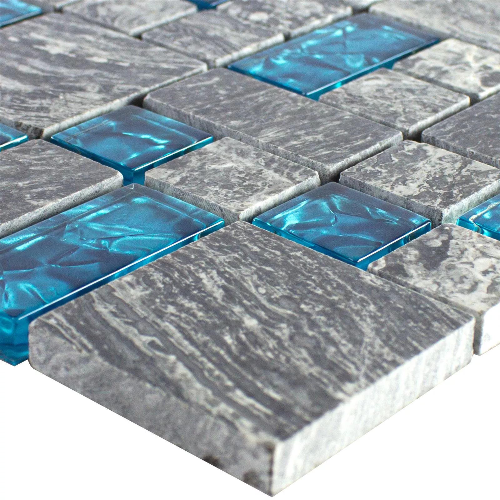 Sample Glass Mosaic Natural Stone Tiles Manavgat Grey Blue ix