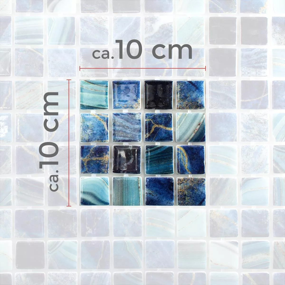 Every tile and every mosaic have different requirements for trimming, laying and und processing due to individual material characteristics and usage conditions. Please ask a local expert for correct and secure laying of your mosaics or tiles. We are not liable for unprofessional usage and faulty workmanship of constructions materials.