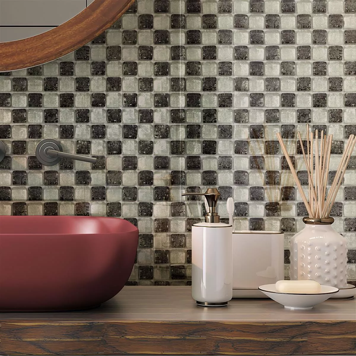 Sample Glass Mosaic Tiles Avola Black Blanc