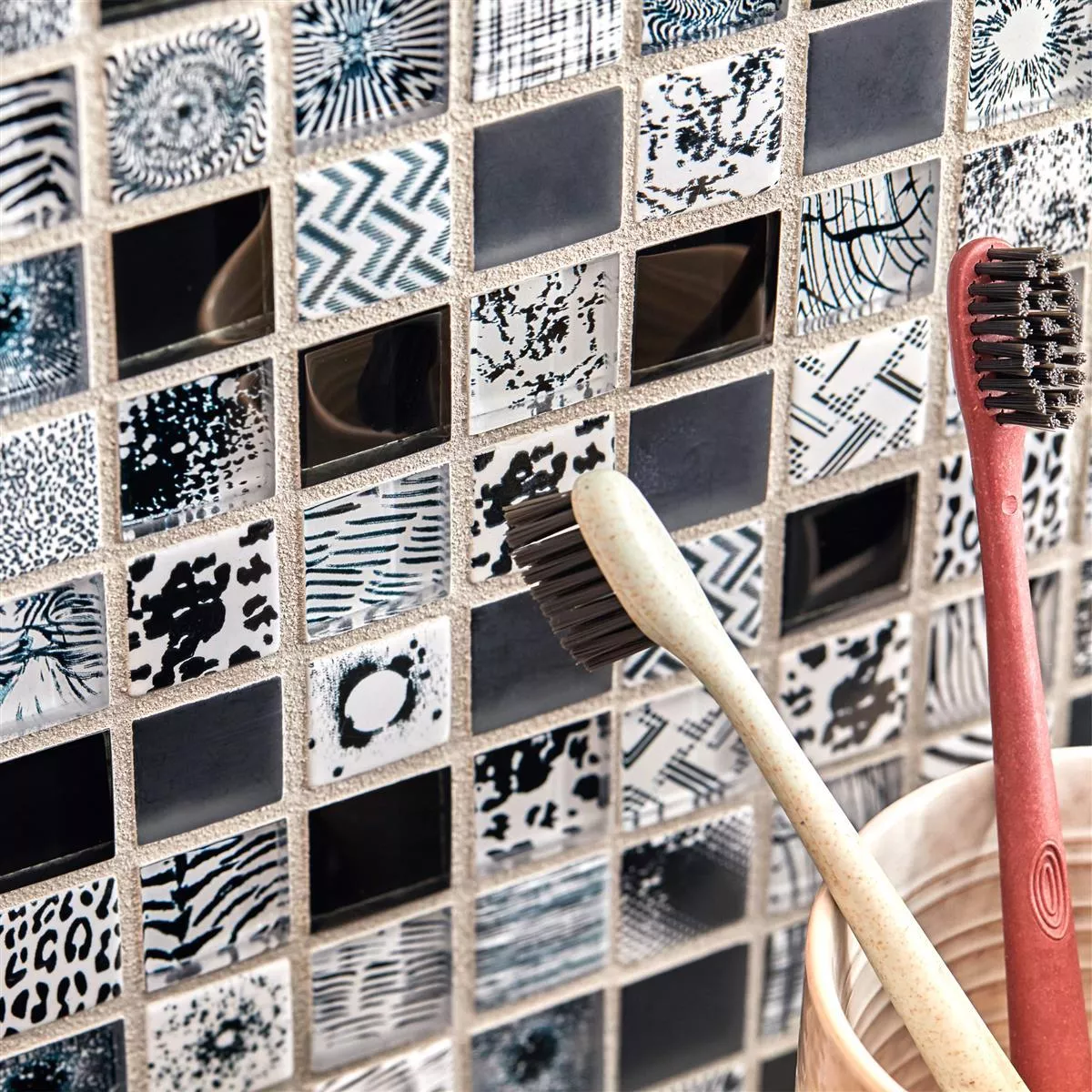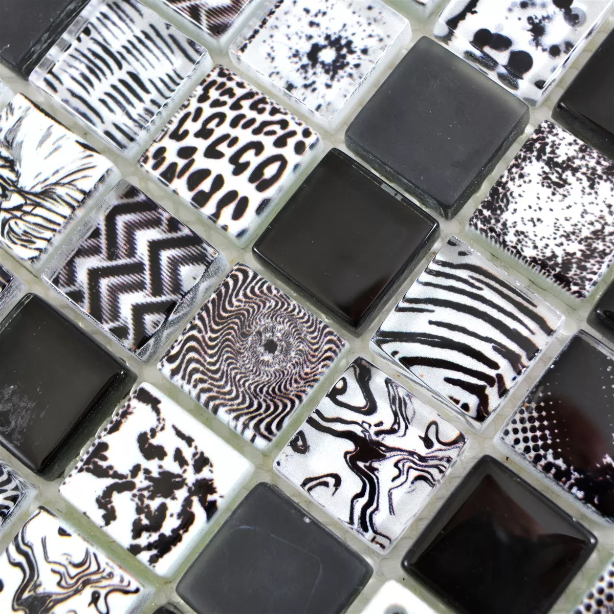 Sample Glass Mosaic Tiles Cornelia Retro Optic Black