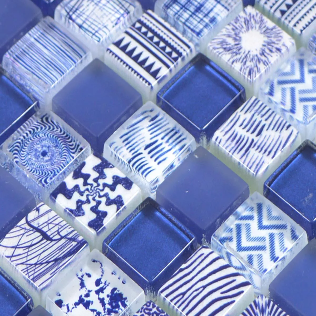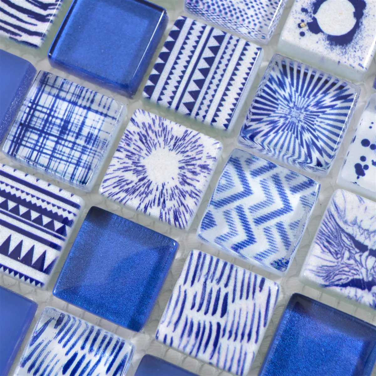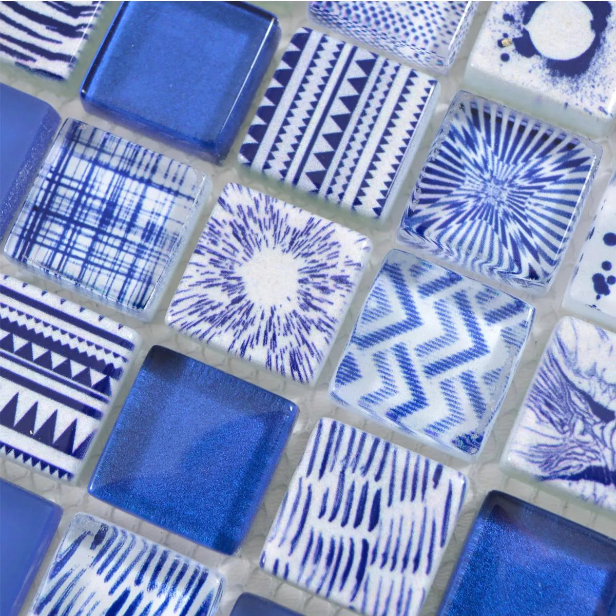 Sample Glass Mosaic Tiles Cornelia Retro Optic Blue