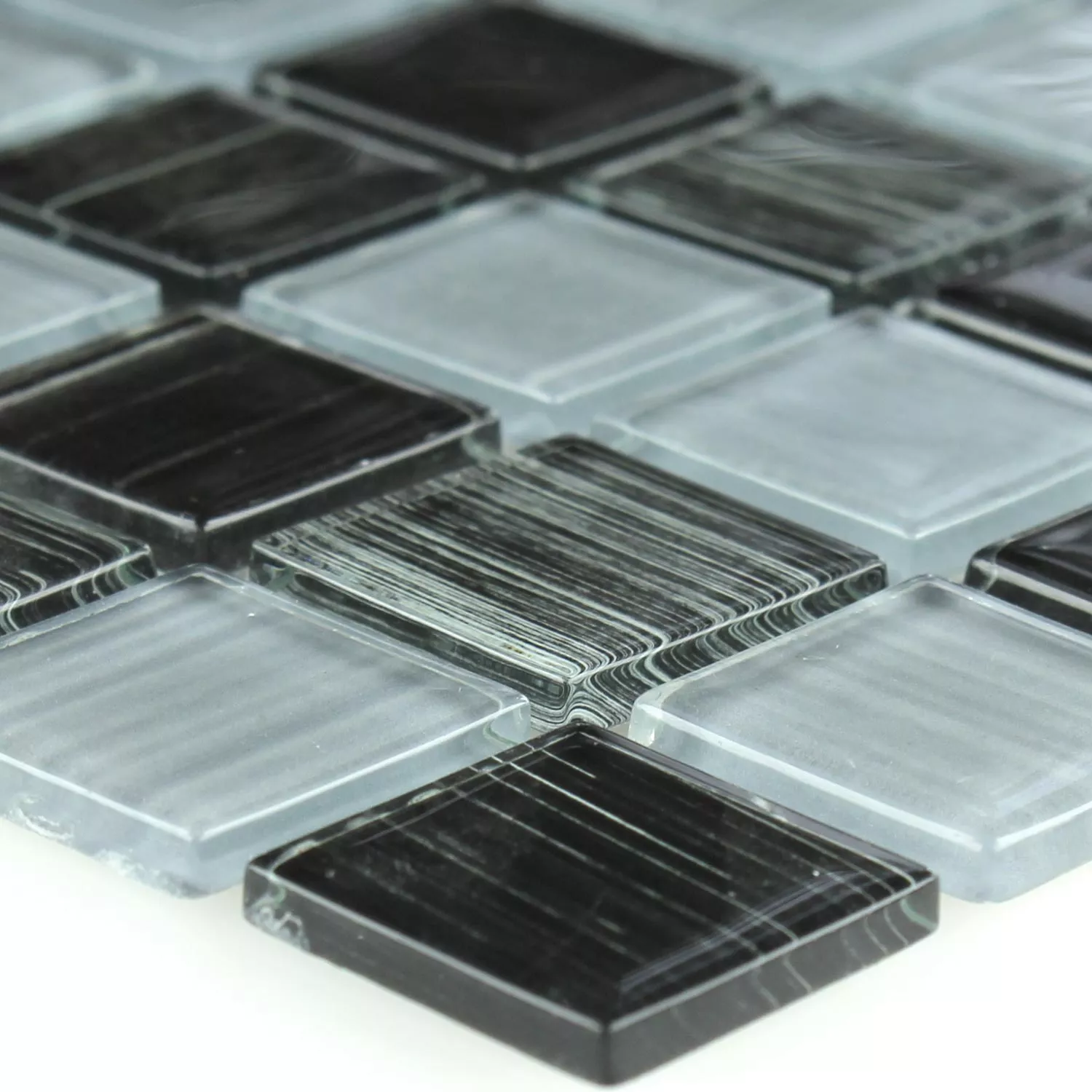 Sample Glass Mosaic Tiles Lafayette Black Grey Striped