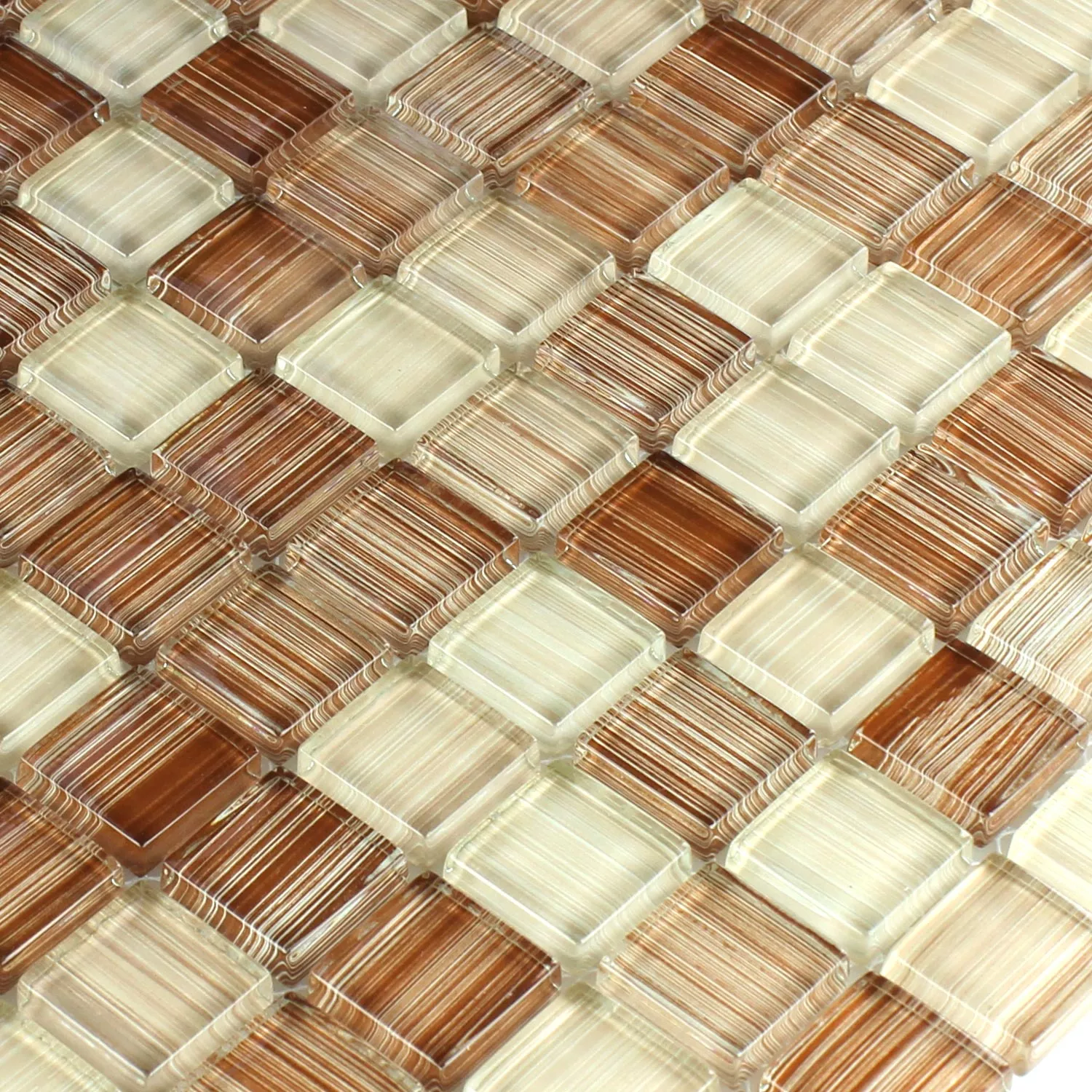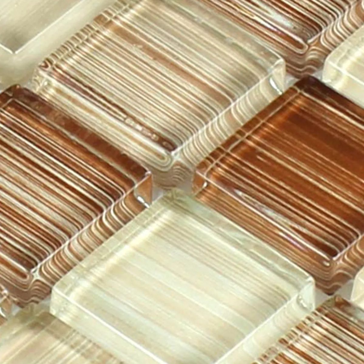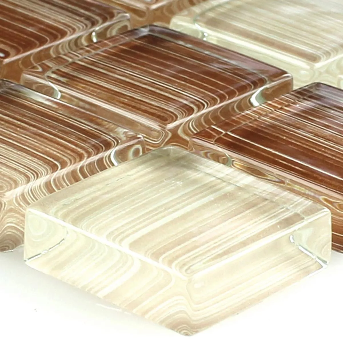 Sample Glass Mosaic Tiles Lafayette Brown Beige Striped 8mm