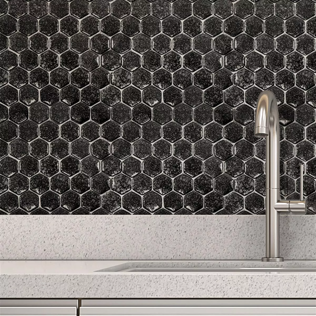 Sample Glass Mosaic Tiles Leopard Hexagon 3D Grey