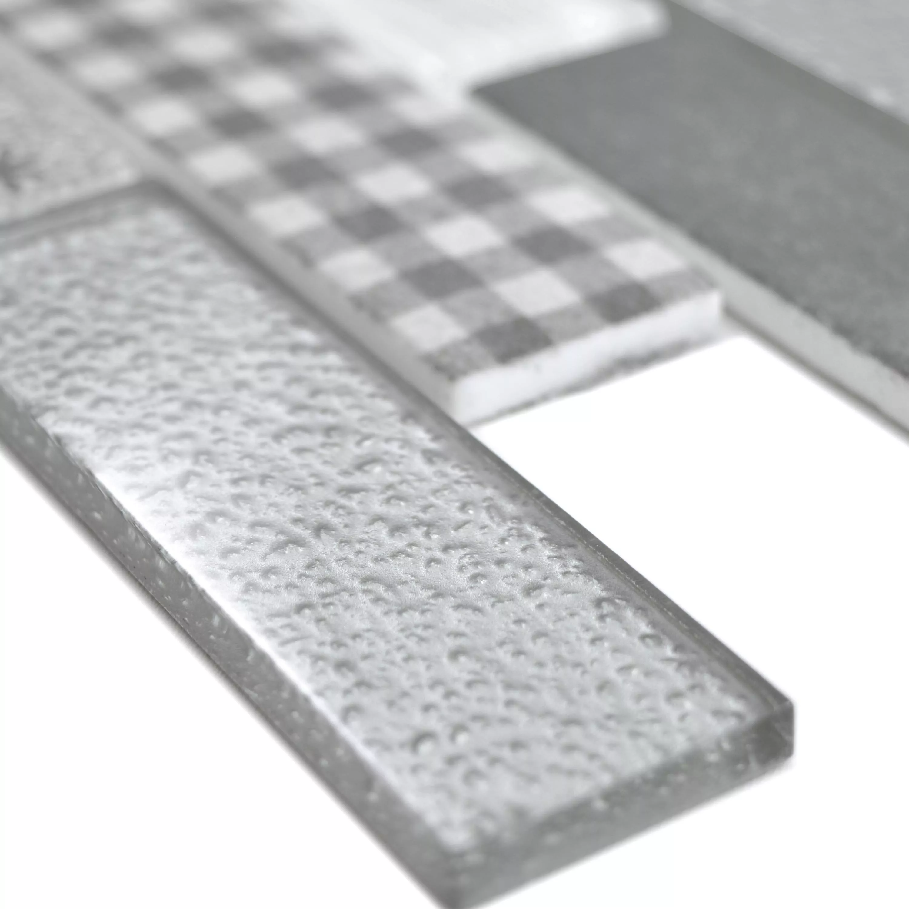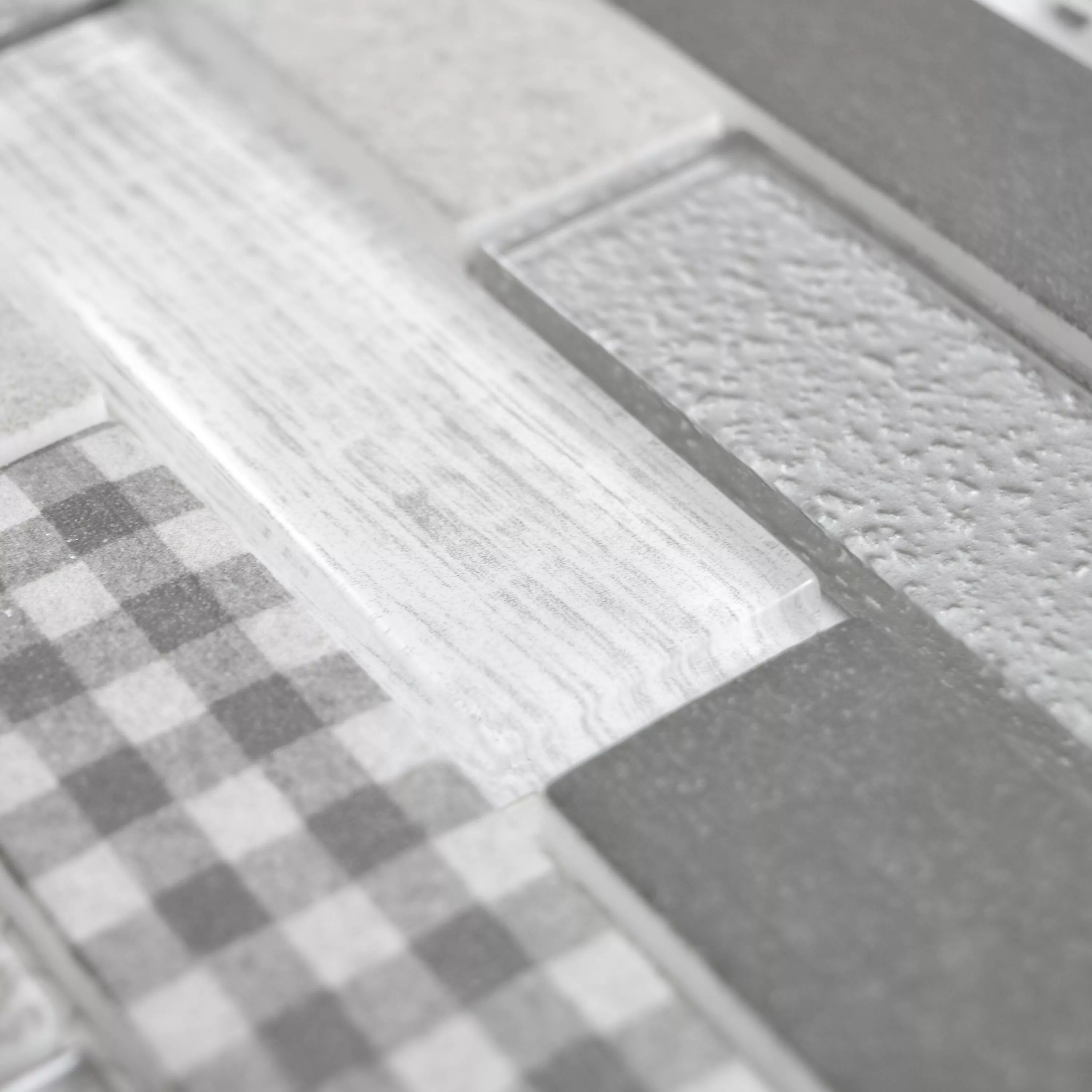 Sample Glass Mosaic Tiles Lunatic Retro Optic Brick Grey