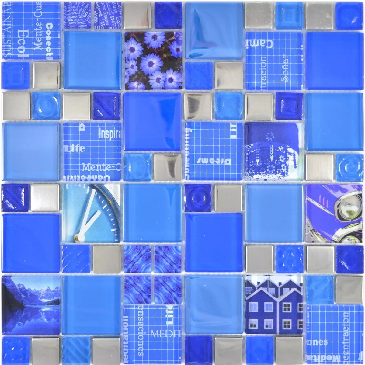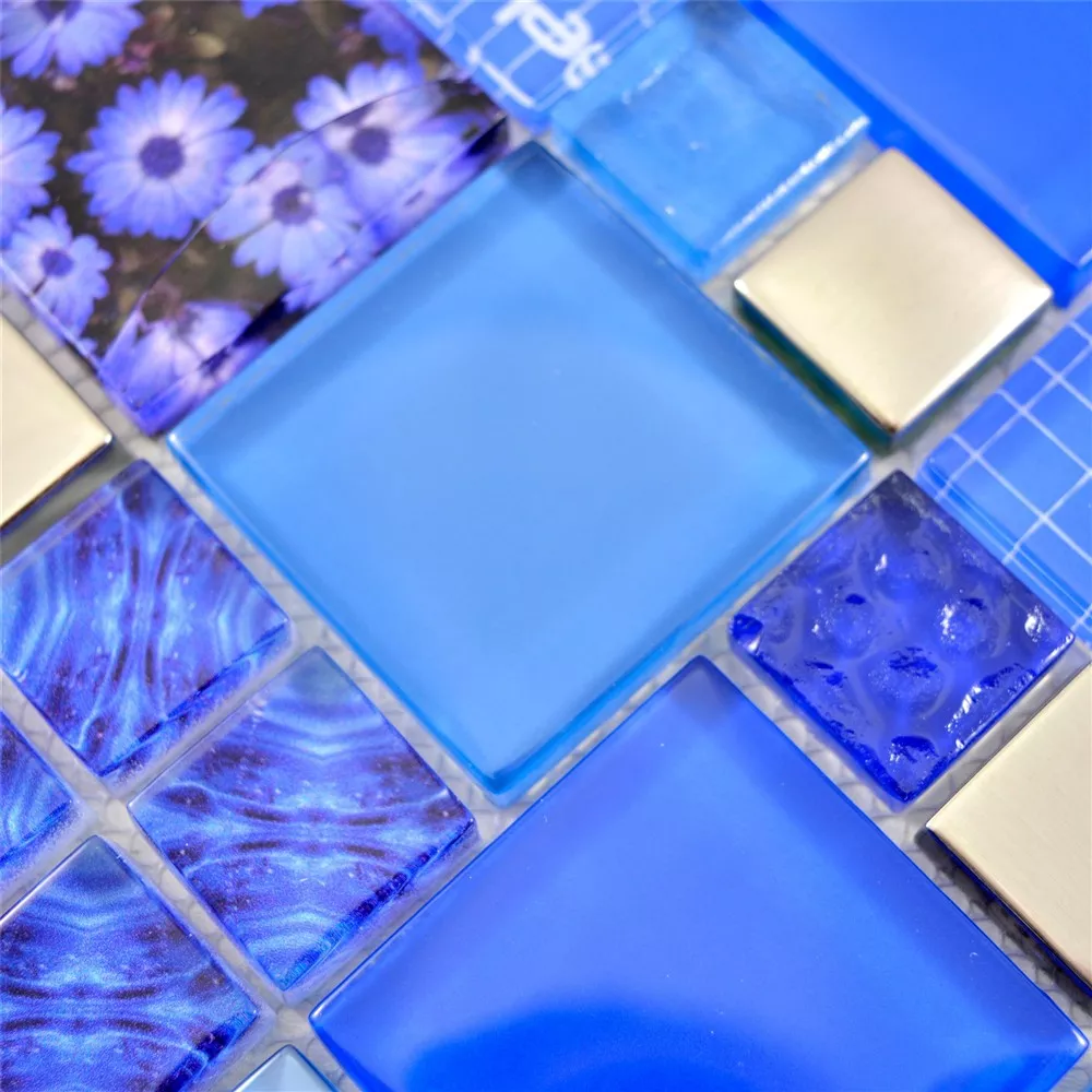 Sample Glass Mosaic Tiles Nemesis Blue Silver