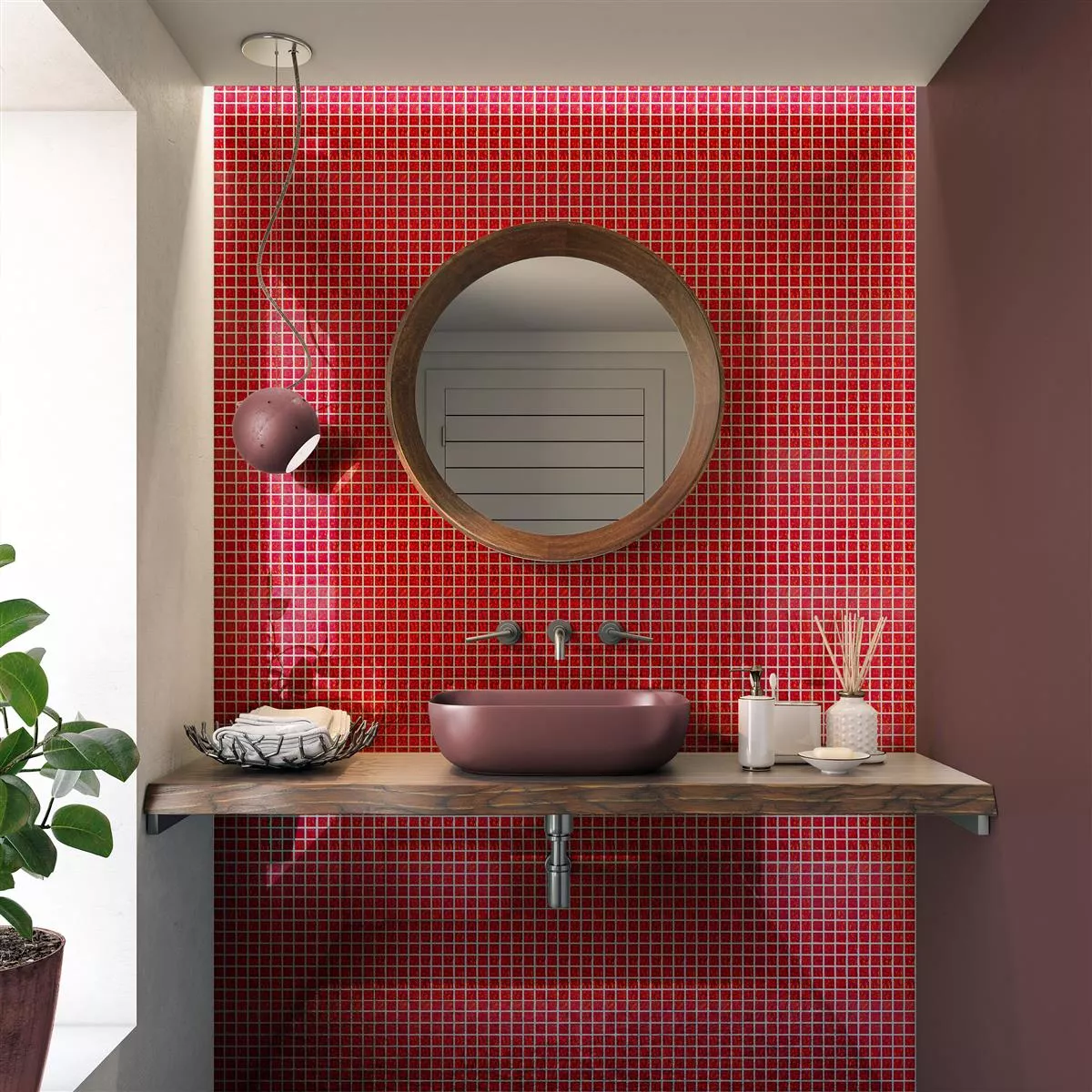 Sample Glass Mosaic Tiles Santa Cruz Structured Red