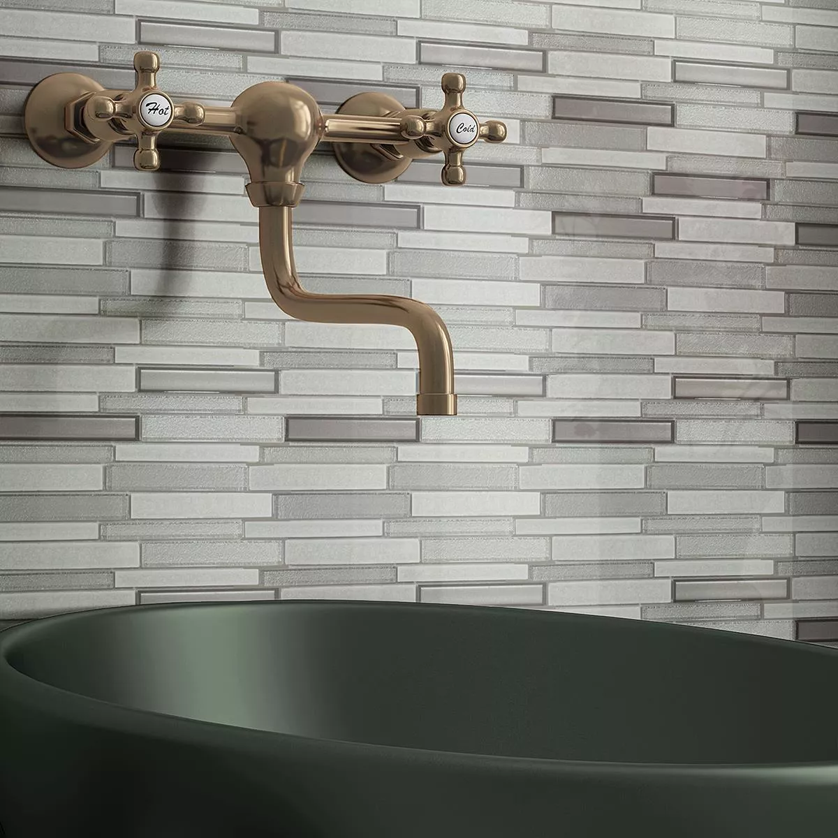 Sample Glass Natural Stone Mosaic Crystal Springs Brick Blanc