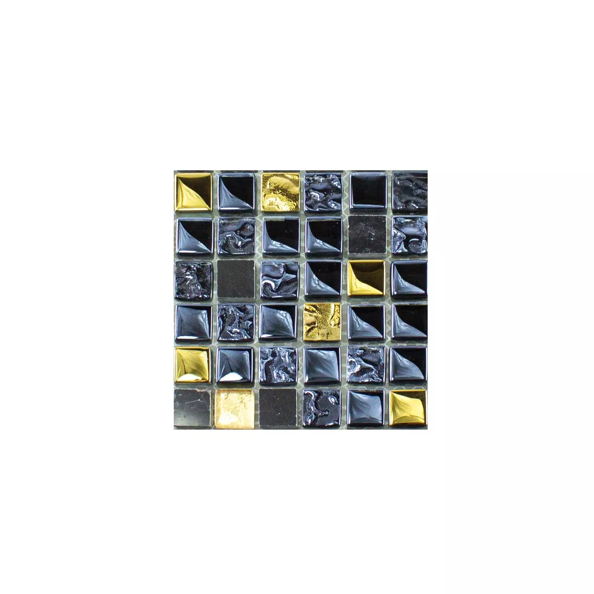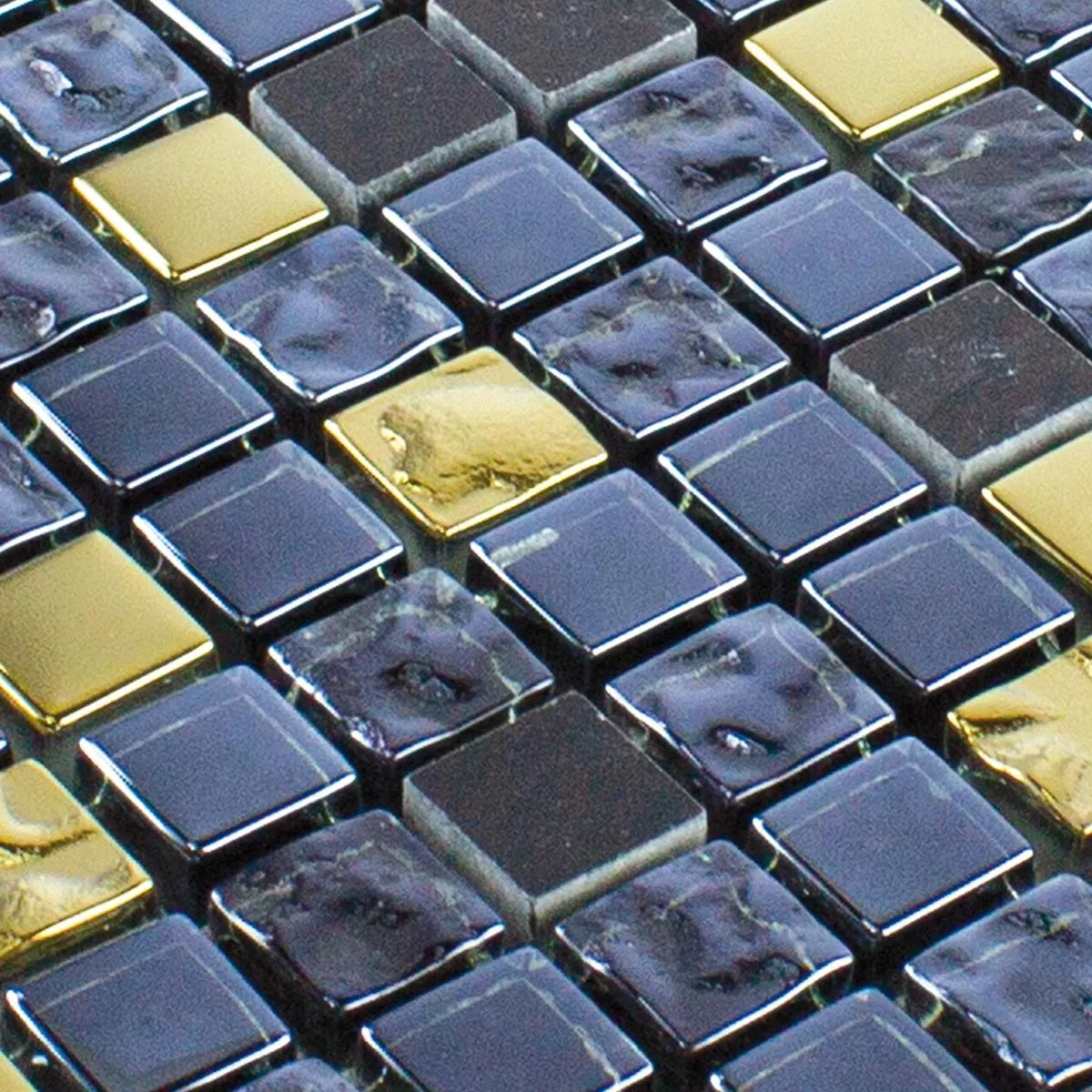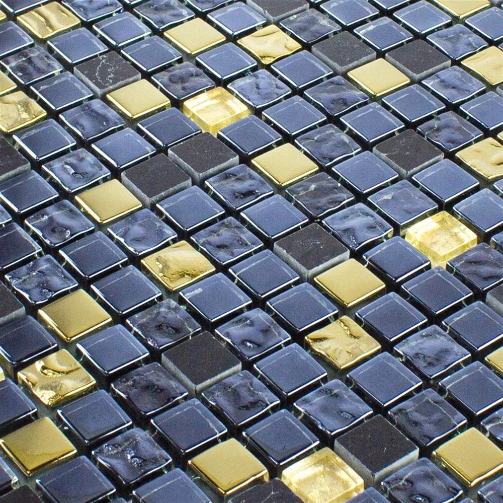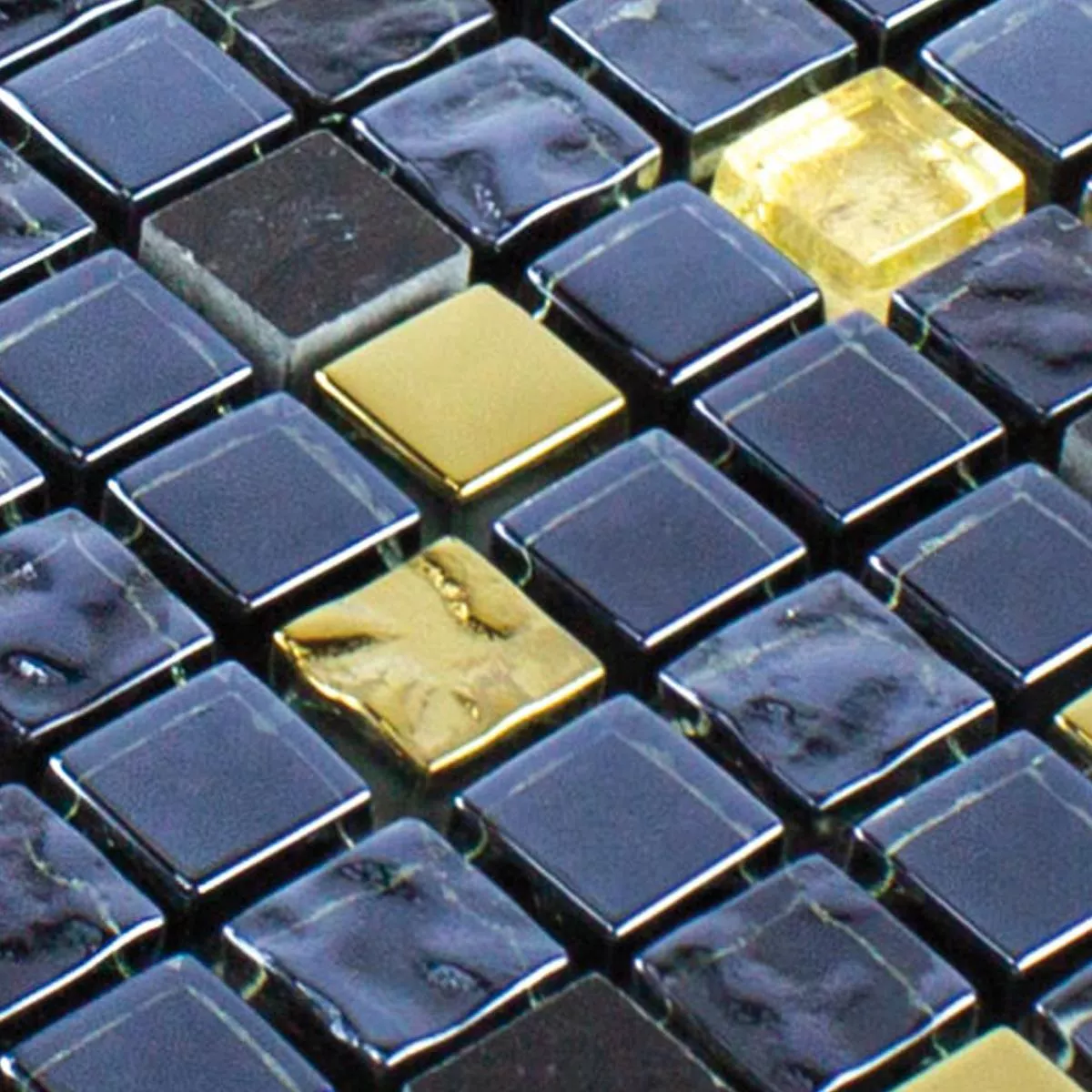 Sample Glass Natural Stone Mosaic Tile Cooktown Black Gold