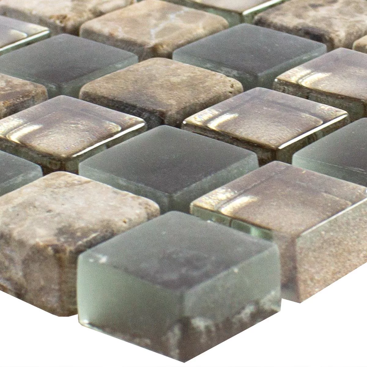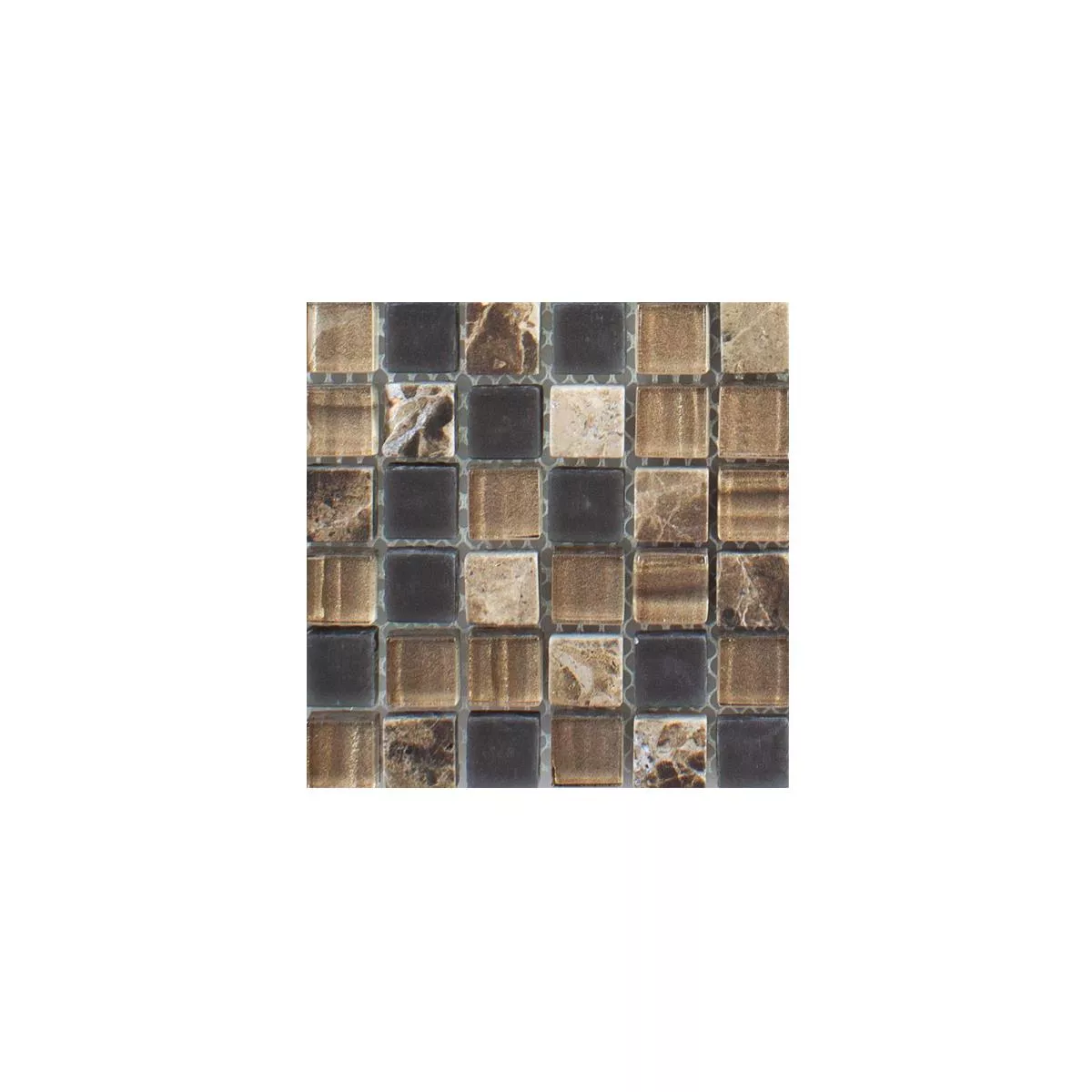 Sample Glass Natural Stone Mosaic Tiles Hayrabey Dark Brown