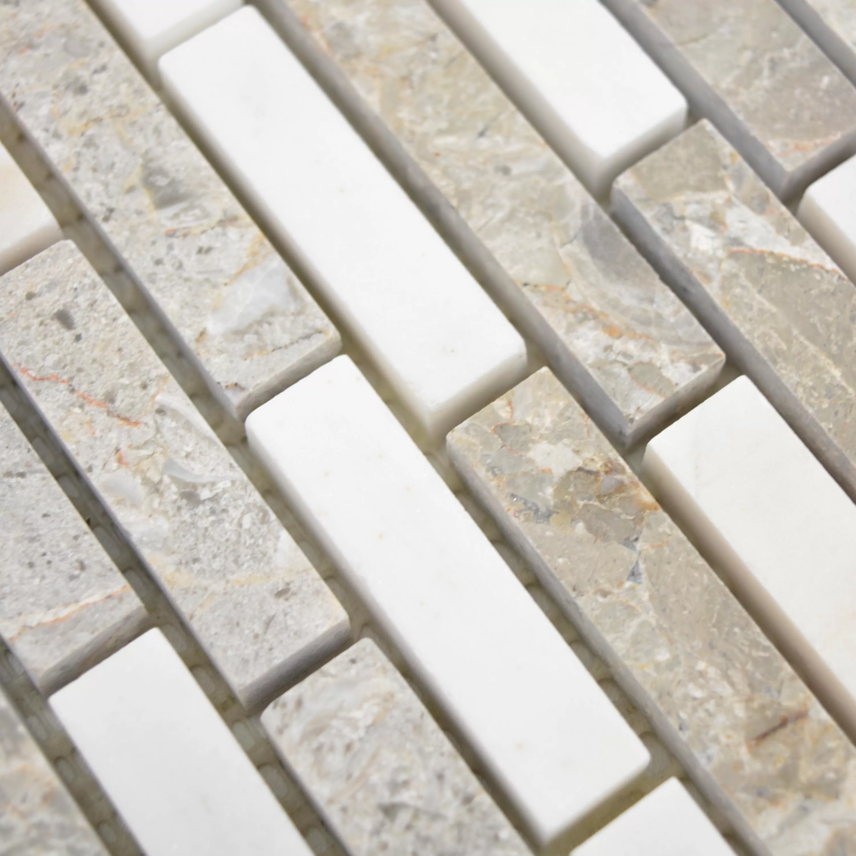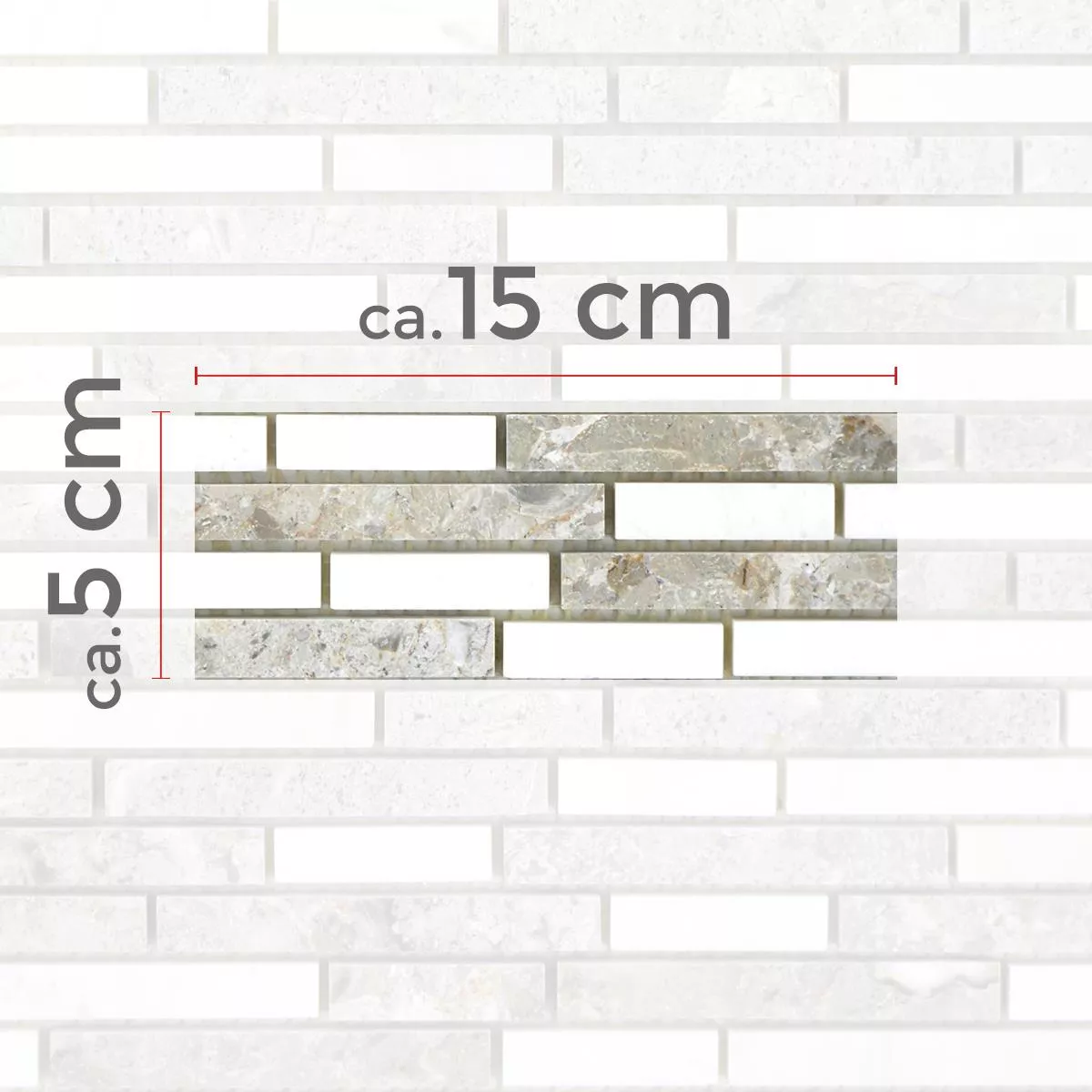 Every tile and every mosaic have different requirements for trimming, laying and und processing due to individual material characteristics and usage conditions. Please ask a local expert for correct and secure laying of your mosaics or tiles. We are not liable for unprofessional usage and faulty workmanship of constructions materials.