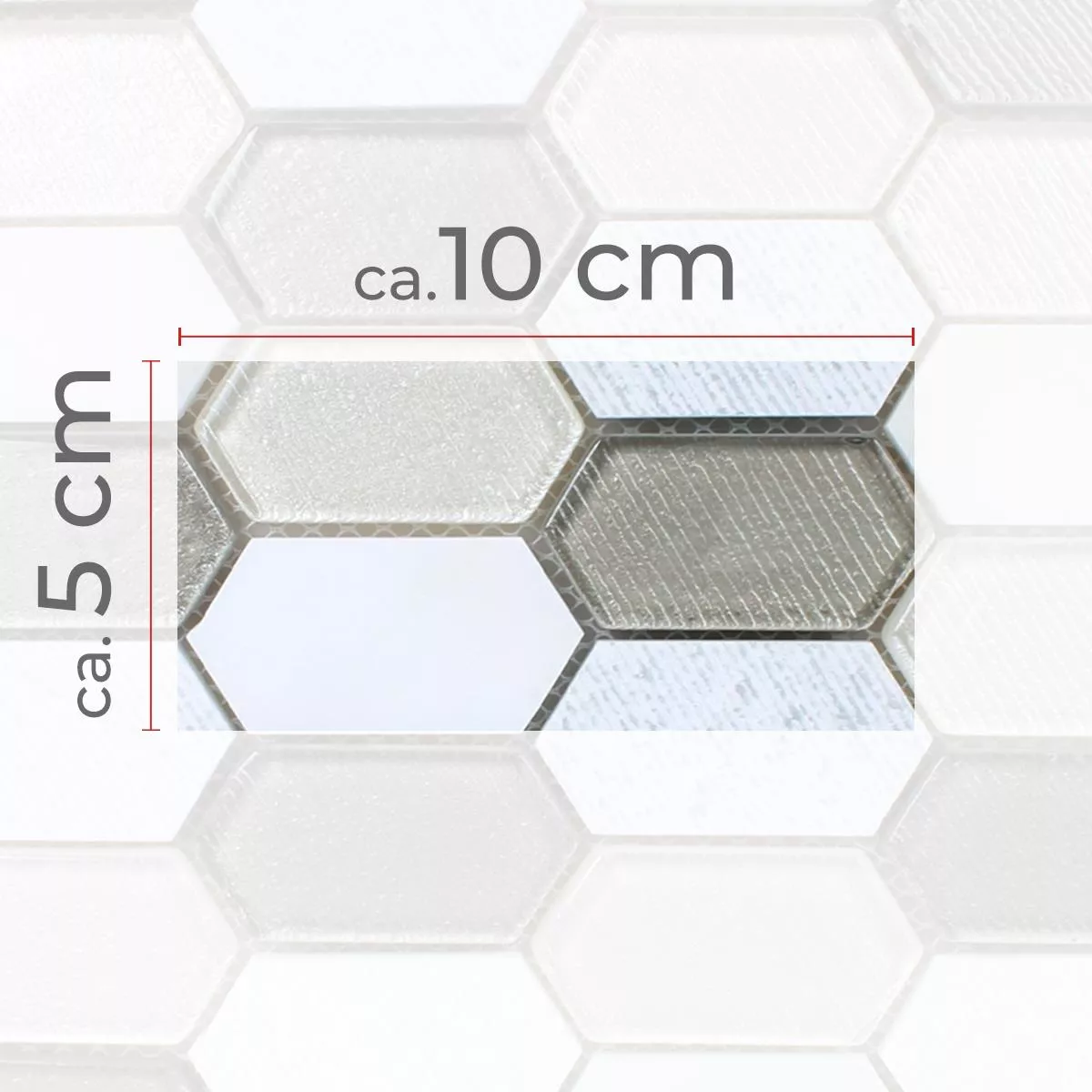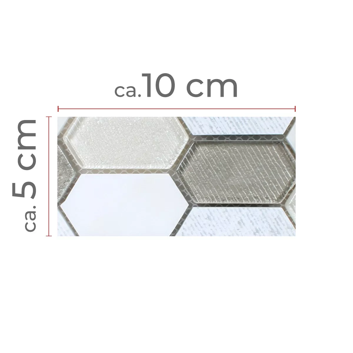Sample Mosaic Tiles Februata Hexagon White Beige Grey