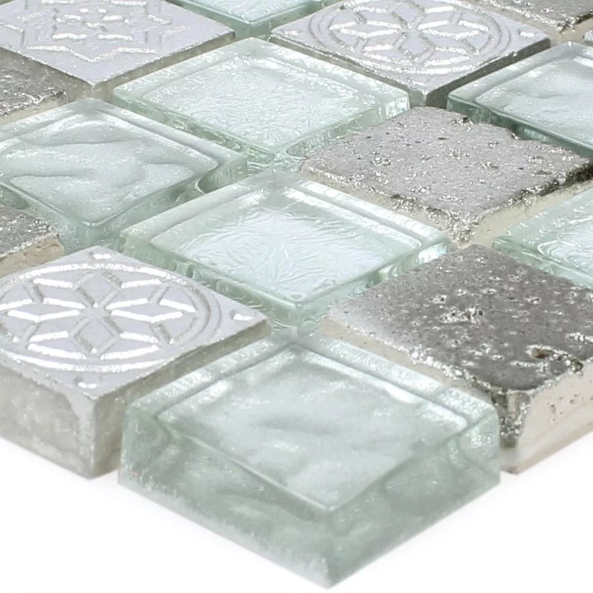 Sample Mosaic Tiles Georgia Glass Natural Stone Mix Silver