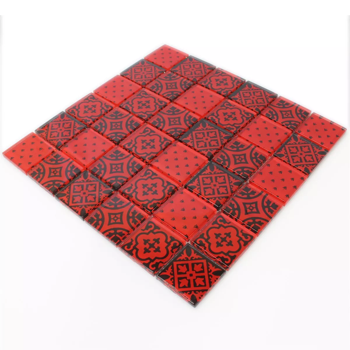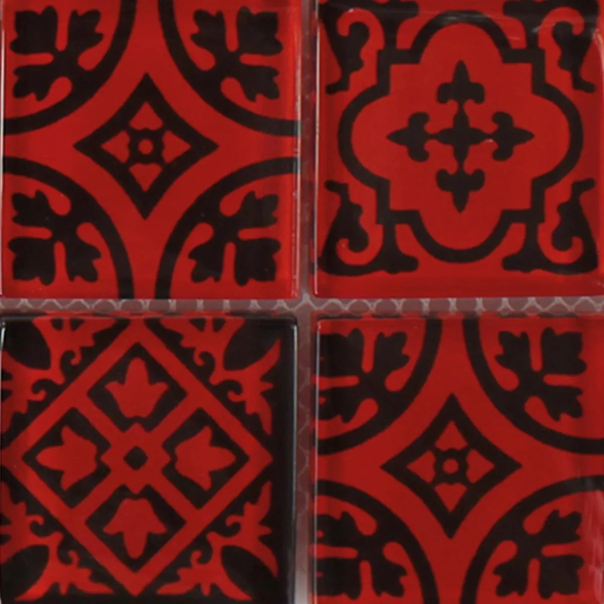 Sample Mosaic Tiles Glass Barock Ornament Red