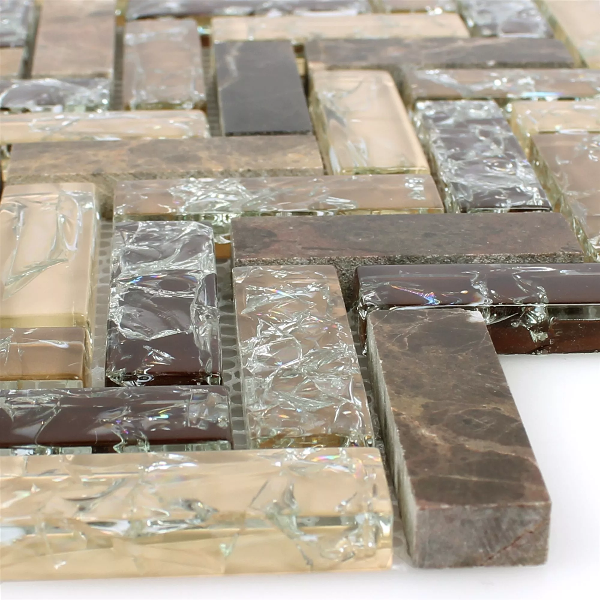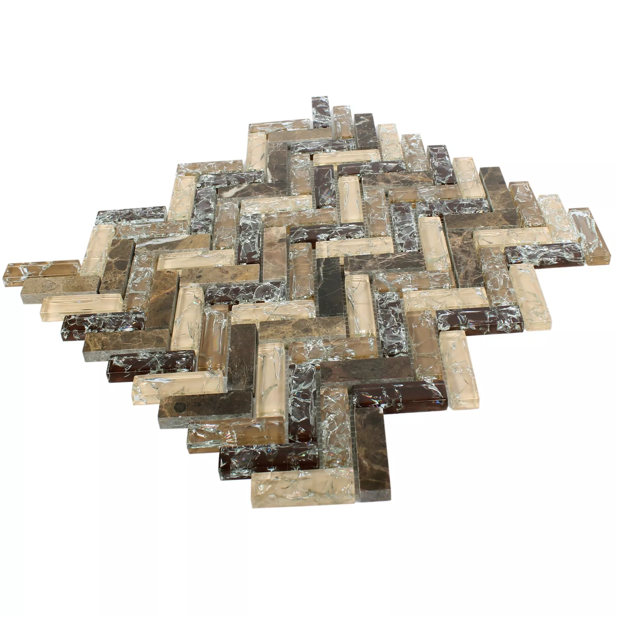 Sample Mosaic Tiles Glass Natural Stone Malawi Dark Emperador Fish Bone